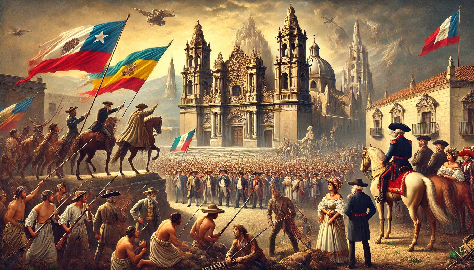 시몬 볼리바르와 호세 데 산 마르틴 같은 혁명 지도자들이 앞장서서 독립전쟁을 이끌었어요. 그 결과 1810년대부터 1820년대 사이에 아르헨티나, 칠레, 콜롬비아, 페루 등이 차례로 스페인으로부터 독립하게 되었어요.