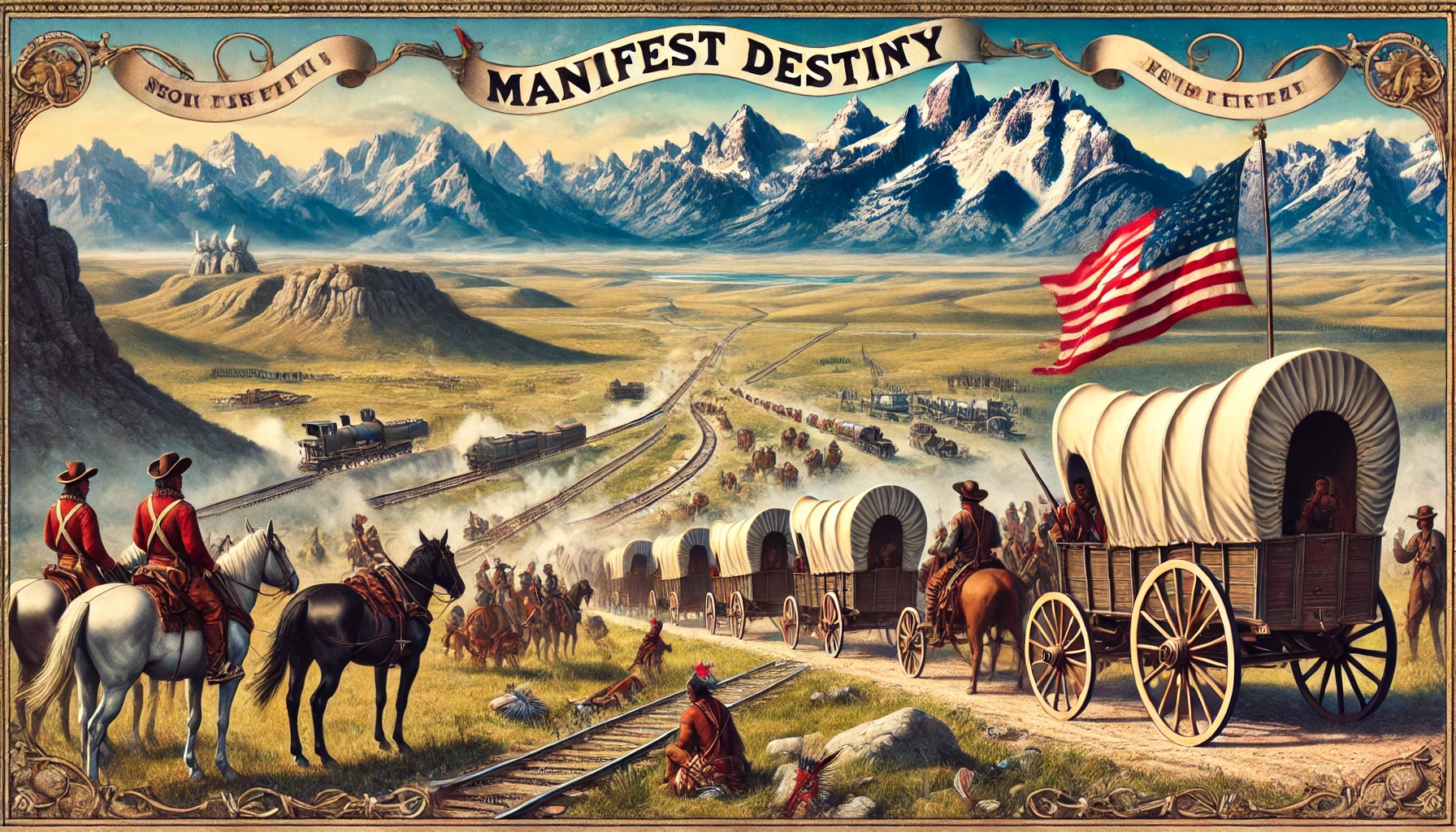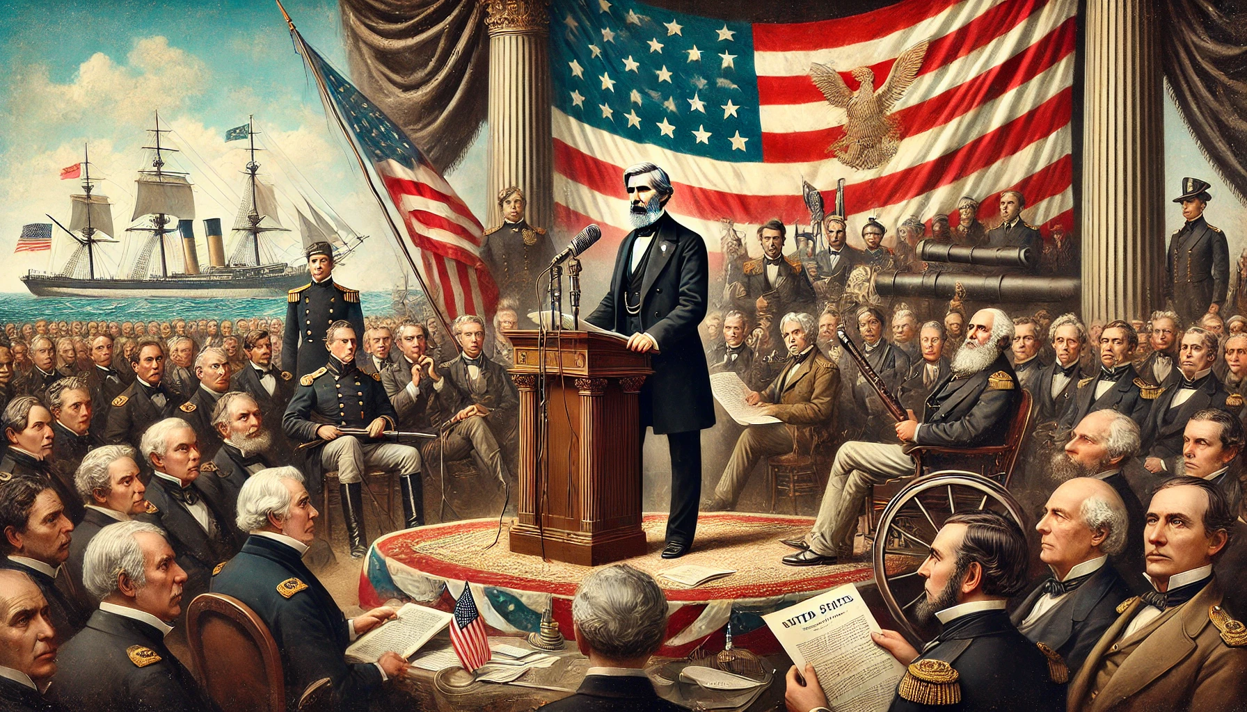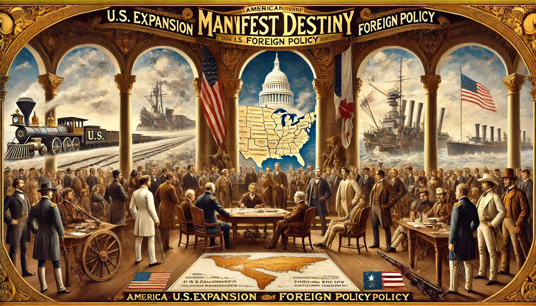 미국은 19세기 중반 ‘명백한 운명(Manifest Destiny)’이라는 개념을 내세우며 서부로 영토를 확장했어요. 이 과정에서 멕시코와 전쟁(1846~1848)을 벌여 캘리포니아, 텍사스, 뉴멕시코 등을 획득했어요.