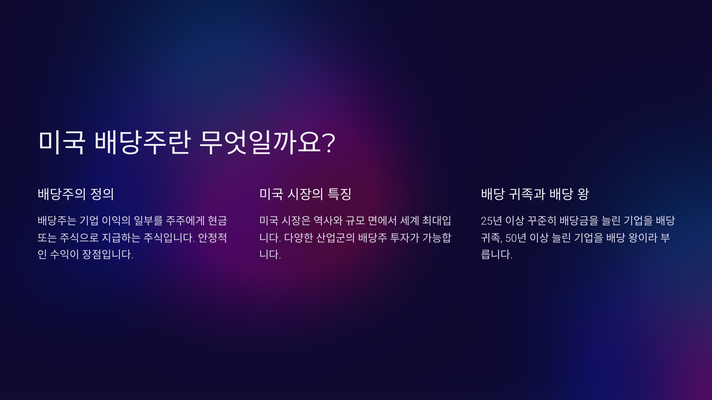 미국 배당주는 기업이 주주들에게 주기적으로 배당금을 지급하는 주식이에요. 📊📌 미국 배당주의 특징