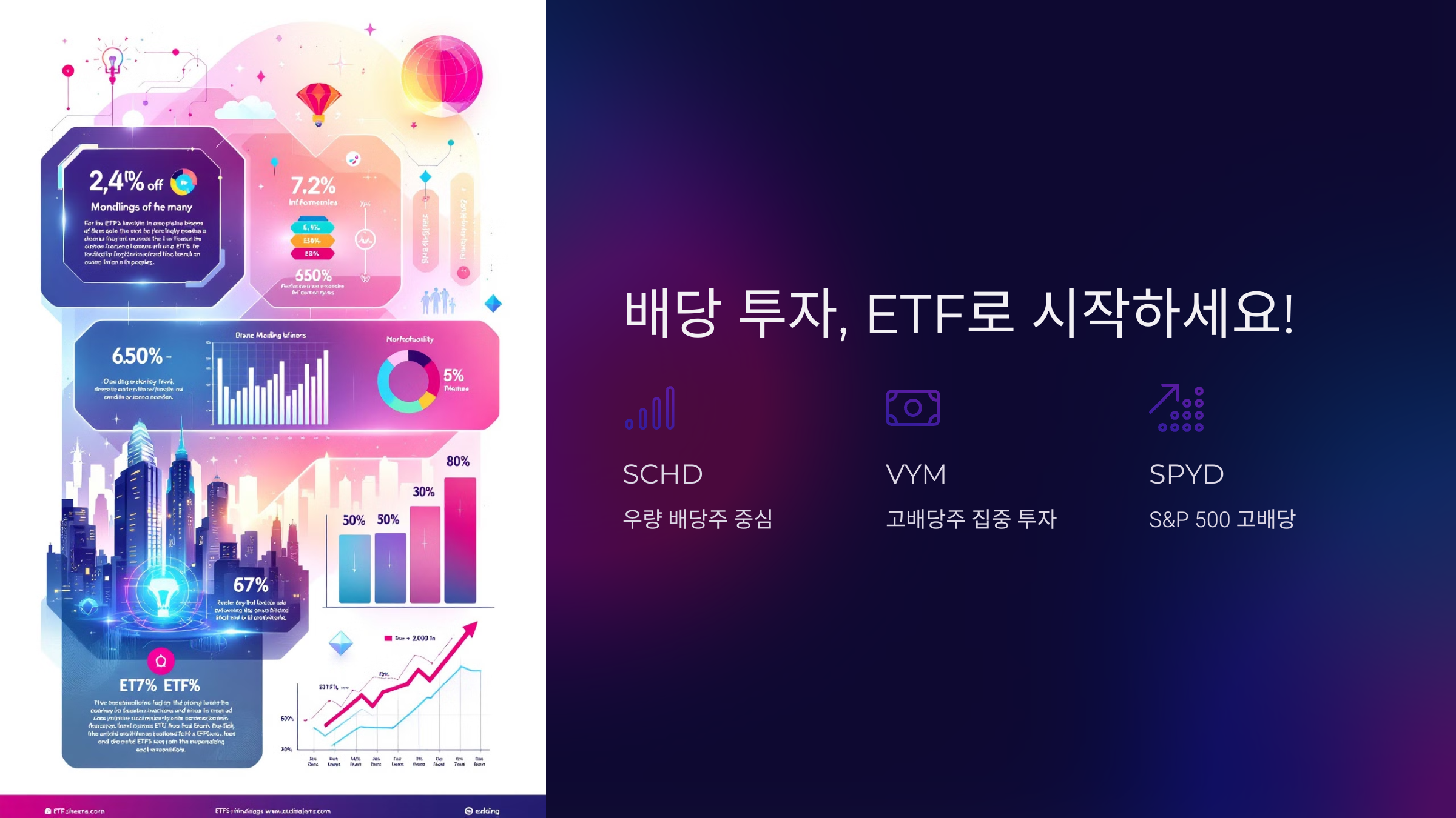- ✅ 배당수익률뿐만 아니라, 성장 가능성과 운용보수(Expense Ratio)도 확인 필요