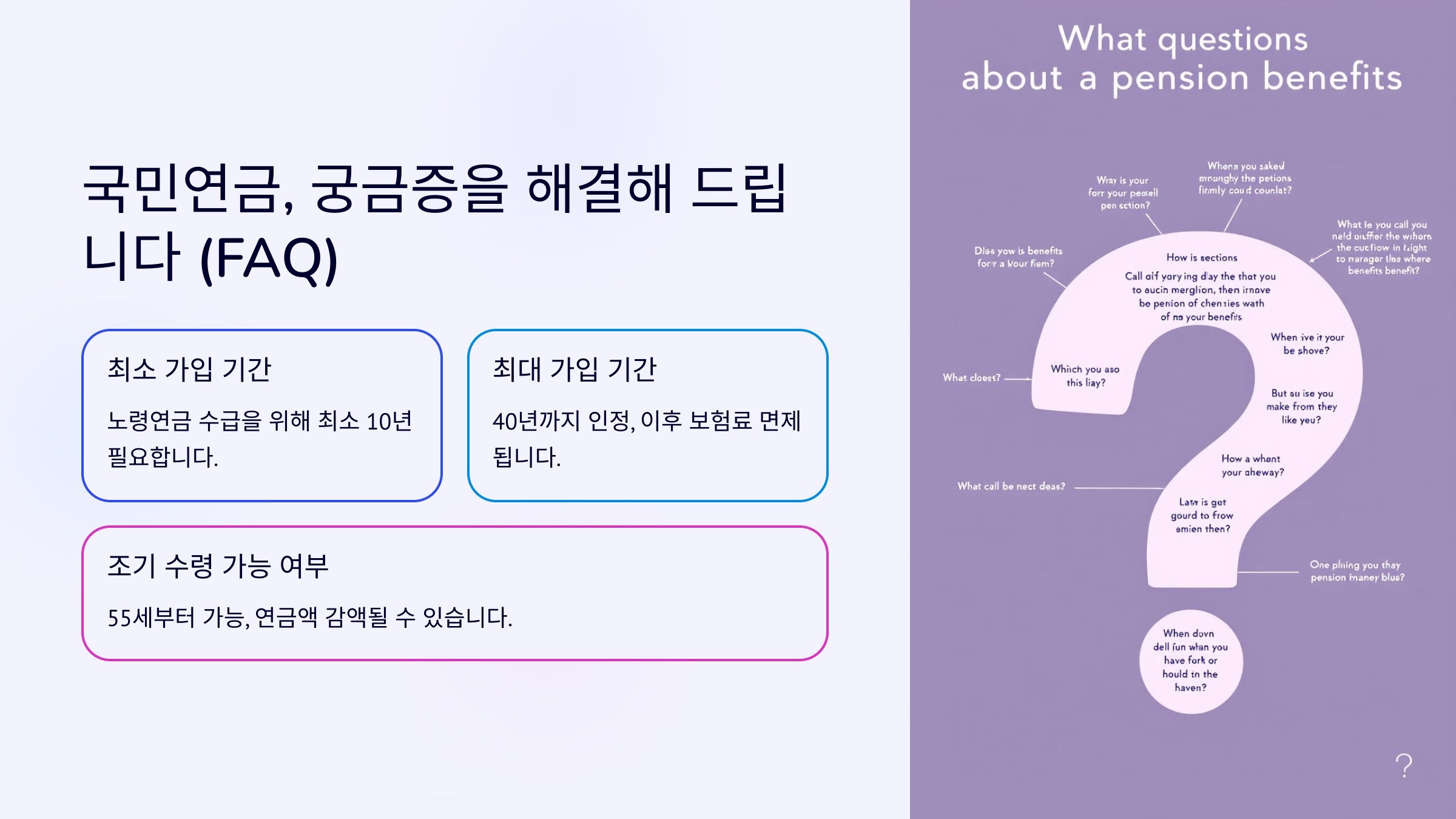 A1. 최소 10년 이상 가입해야 국민연금을 받을 수 있어요. 10년 미만이면 반환일시금으로 지급됩니다.
