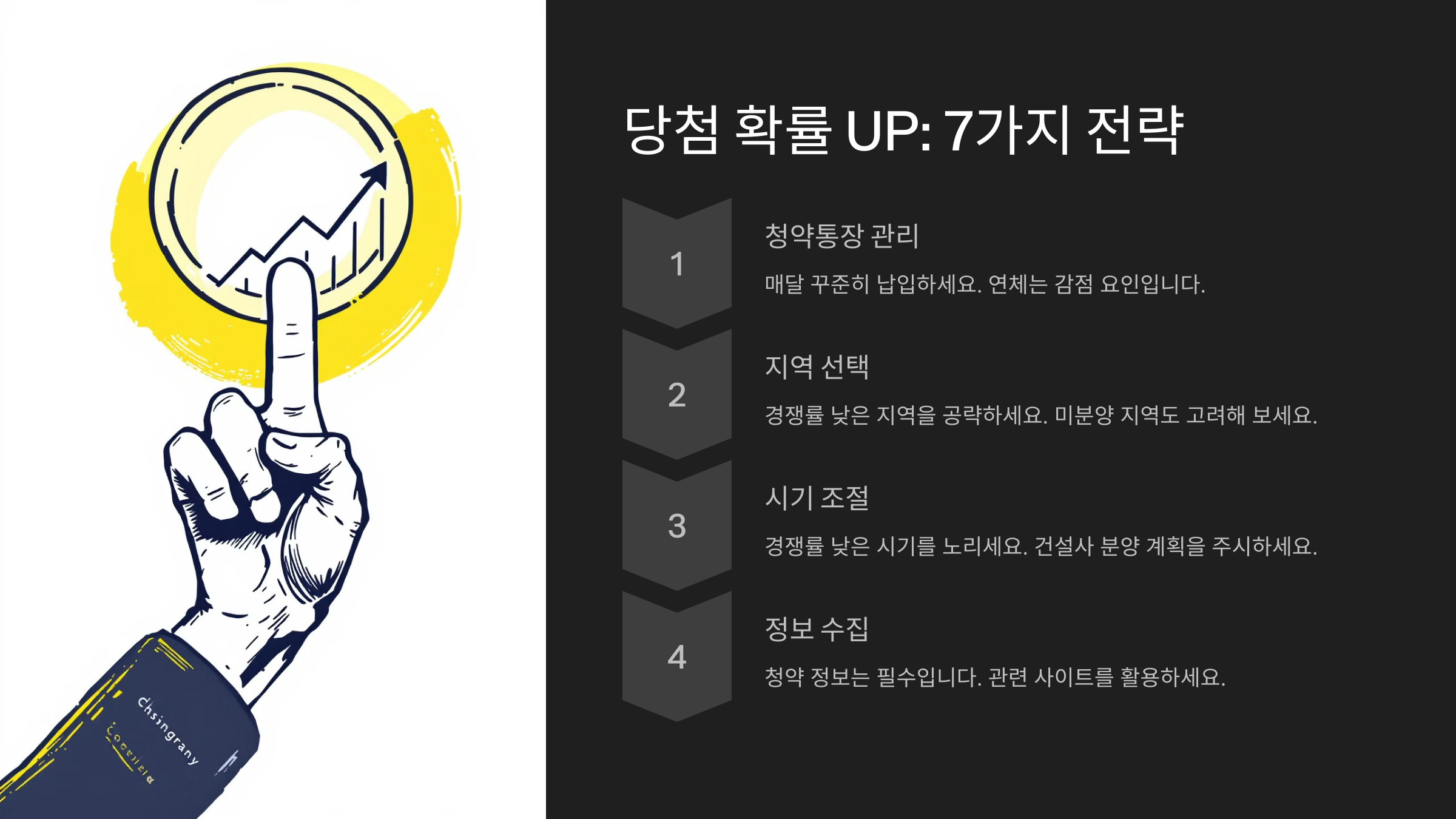 주택청약은 경쟁률이 높지만, 몇 가지 전략만 알면 당첨 확률을 크게 높일 수 있어요! 다음 7가지 전략을 실천해 보세요. 🔥