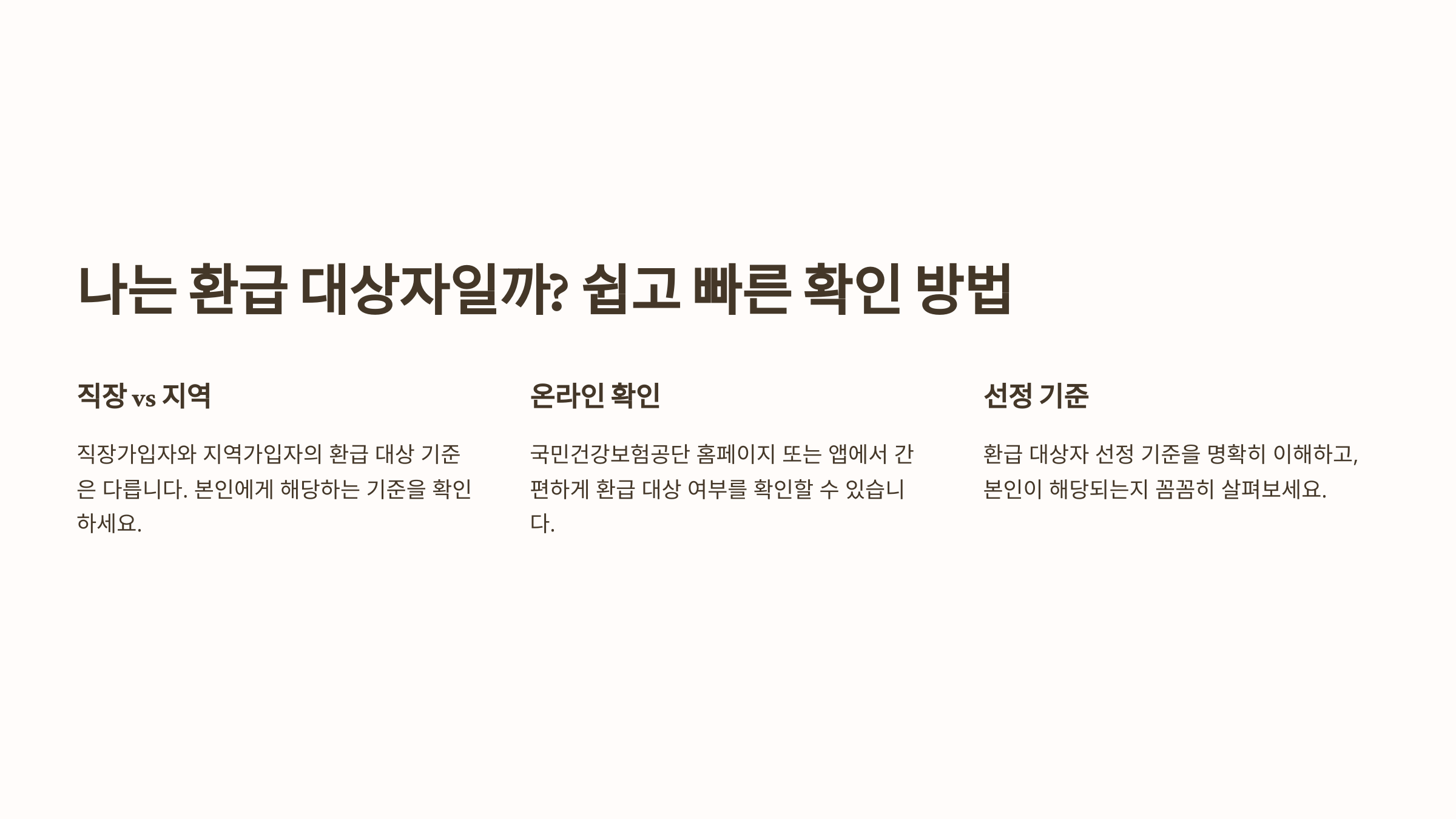 모든 가입자가 건강보험료 환급을 받을 수 있는 것은 아니에요. 아래 조건에 해당하는 경우 환급 대상자가 될 수 있어요. 🔍
