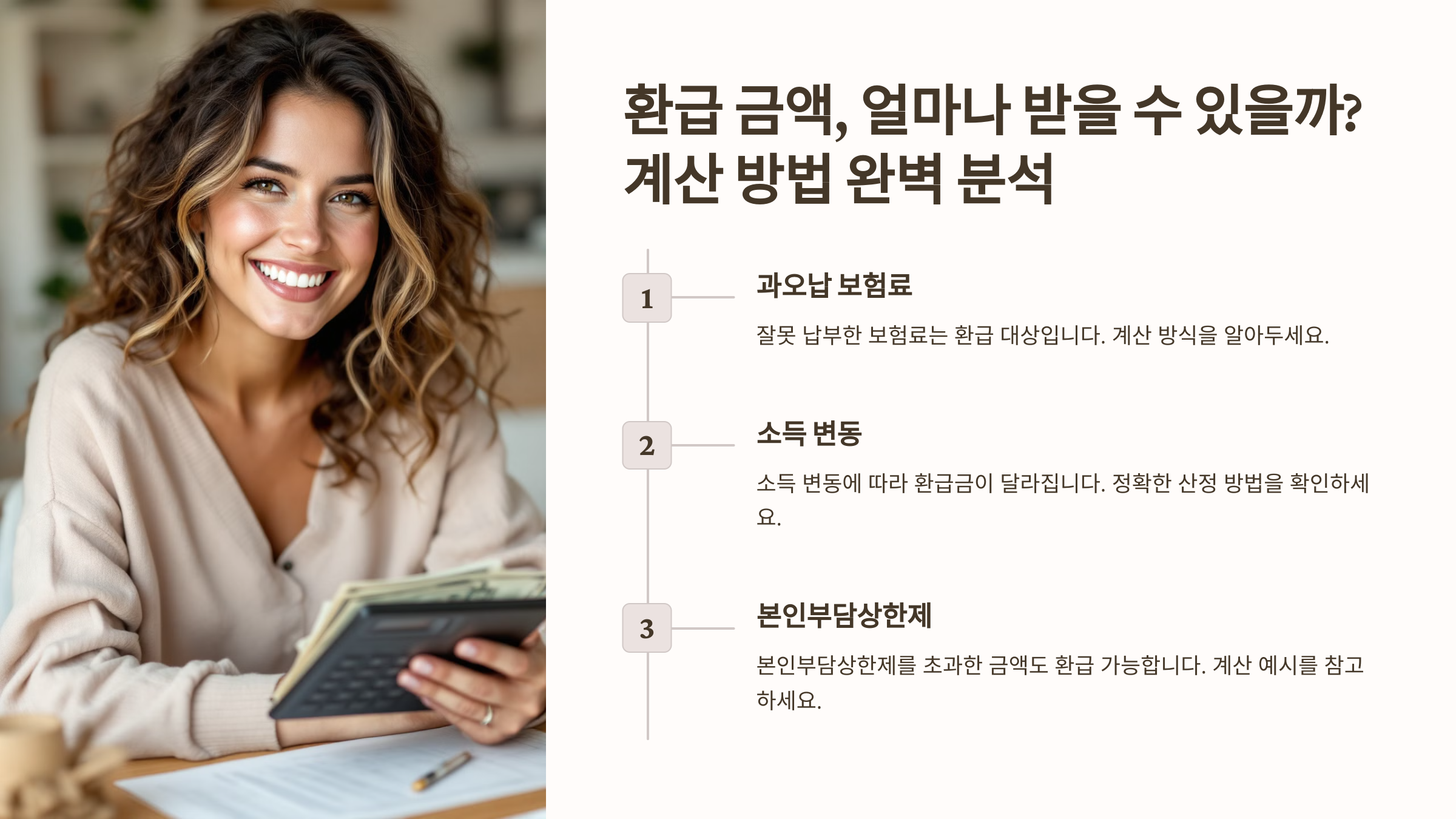 건강보험료 환급 금액은 소득 변동, 이중 납부 여부, 피부양자 등록 여부 등에 따라 달라져요. 본인의 환급 금액을 직접 확인하는 방법을 알려드릴게요! 📊