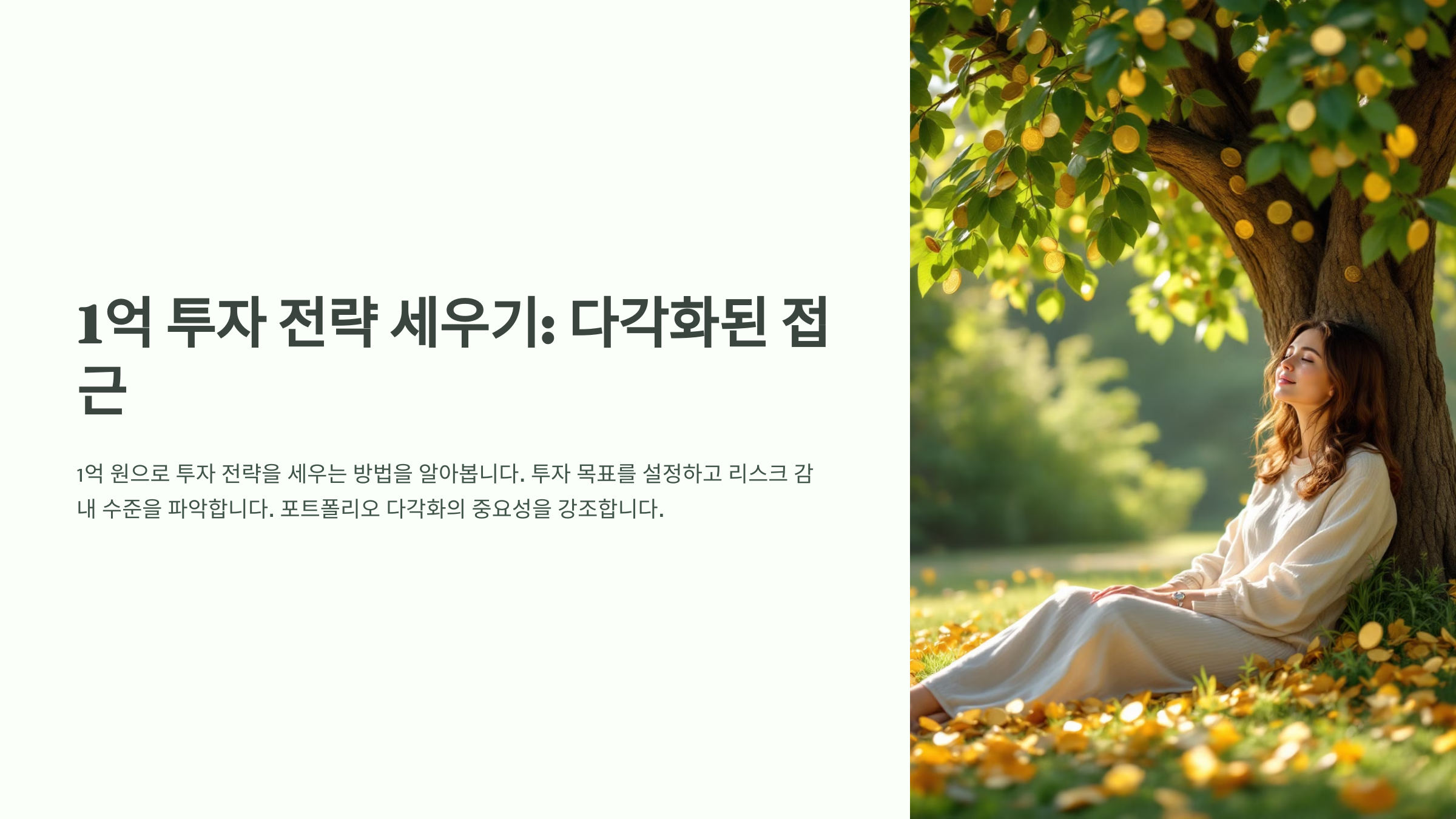 1억 원을 가지고 투자할 때 가장 중요한 것은 안정성과 수익률을 고려한 분산 투자 전략이에요. 💰