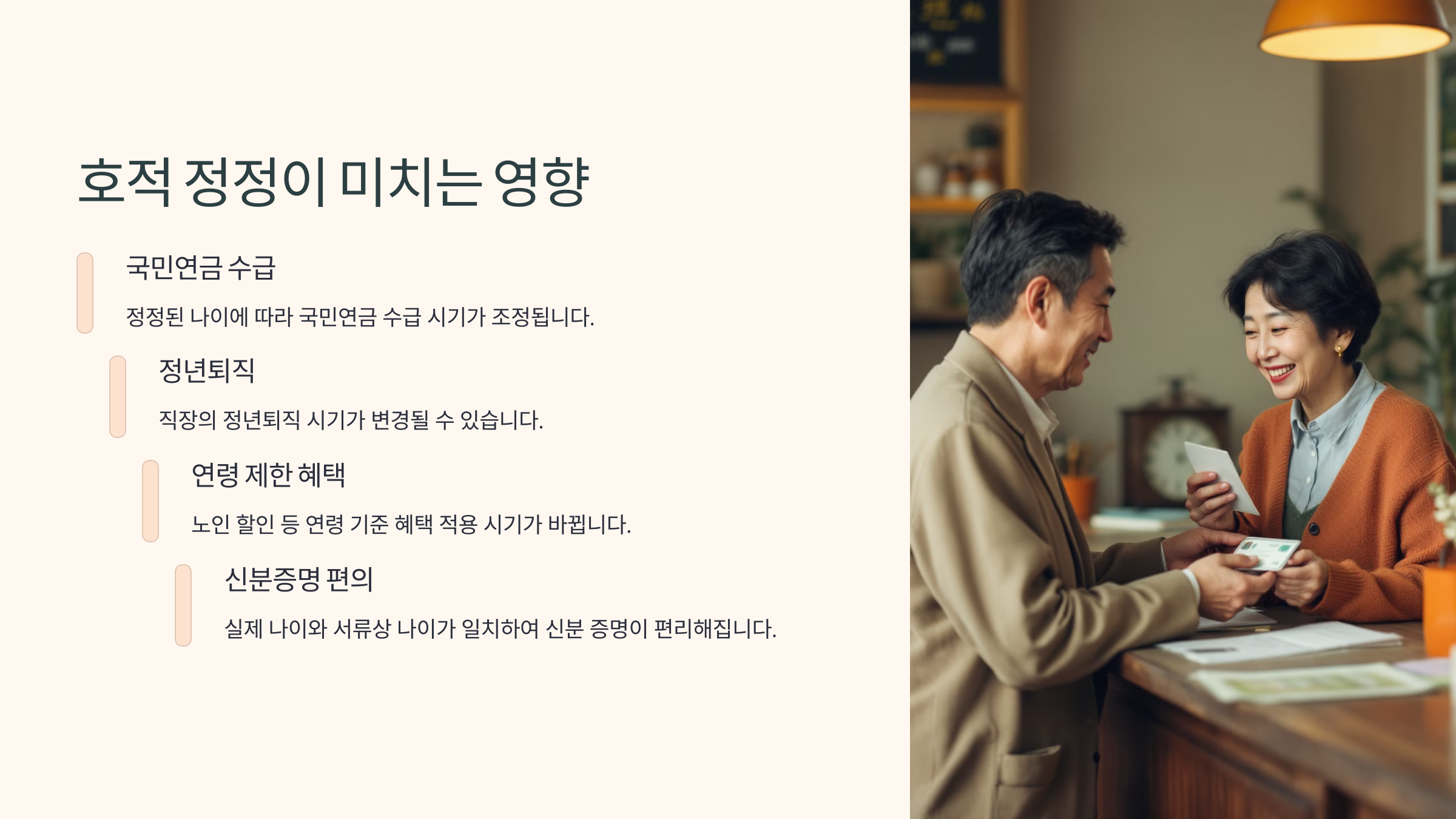 호적상 나이가 정정되면 생각보다 많은 부분에서 변화가 생겨요. 단순히 "나이가 달라졌다"는 문제를 넘어서, 실생활에도 영향을 미칠 수 있어요.