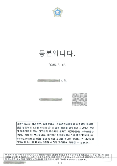 등록부정정 신청 허가 결정문 사본(2/2) 그는 본래 나이로 정정된 후 연금을 정상적으로 받을 수 있게 되었고, 각종 행정 업무는 물론 본인의 제대로된 나이을 찾아서 만족스런 대인관계는 물론 행복한 여생을 보낼 수 있게 되었어요. 🎉