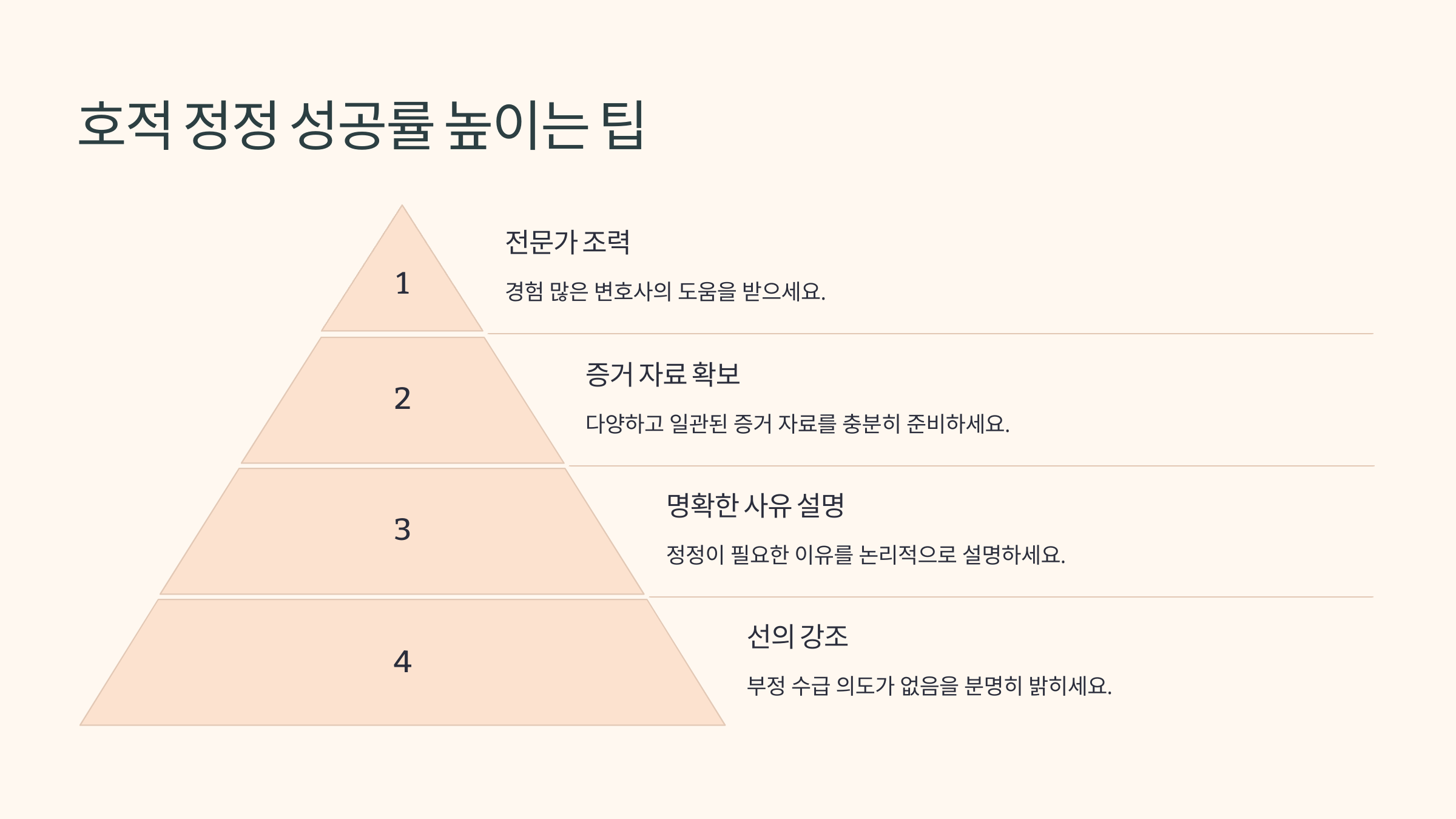 호적 정정 신청이 무조건 승인되는 것은 아니에요. 법원이 정정을 받아들이지 않는 경우도 많죠. 그렇다면 어떻게 하면 승인 가능성을 높일 수 있을까요?
