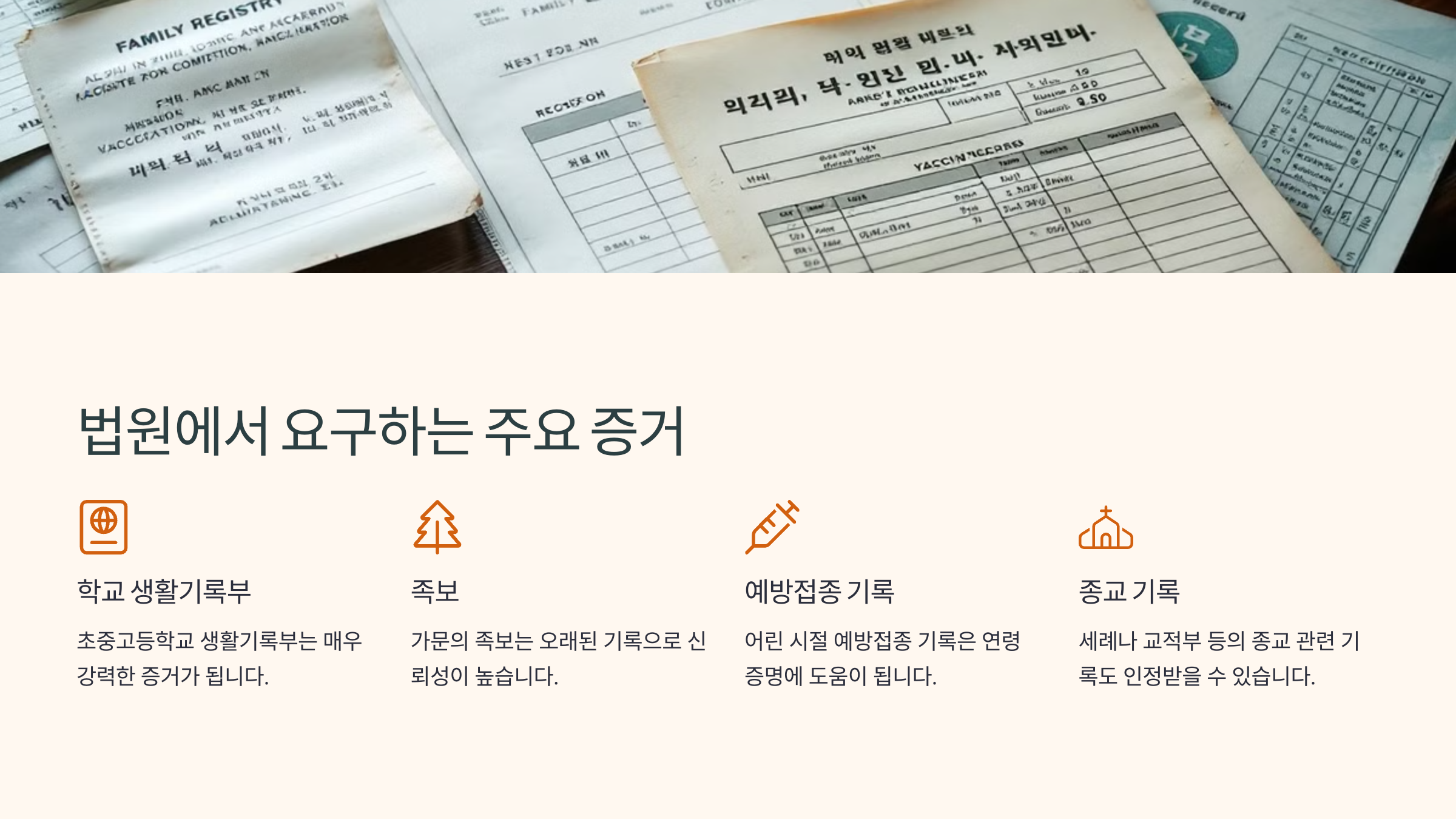 A3. 꼭 출생 증명서가 없어도 다른 증거(초등학교 졸업증명서, 주민등록 초본, 가족 진술서, 족보사본, 사주단자 등)로 보완할 수 있어요. 📜