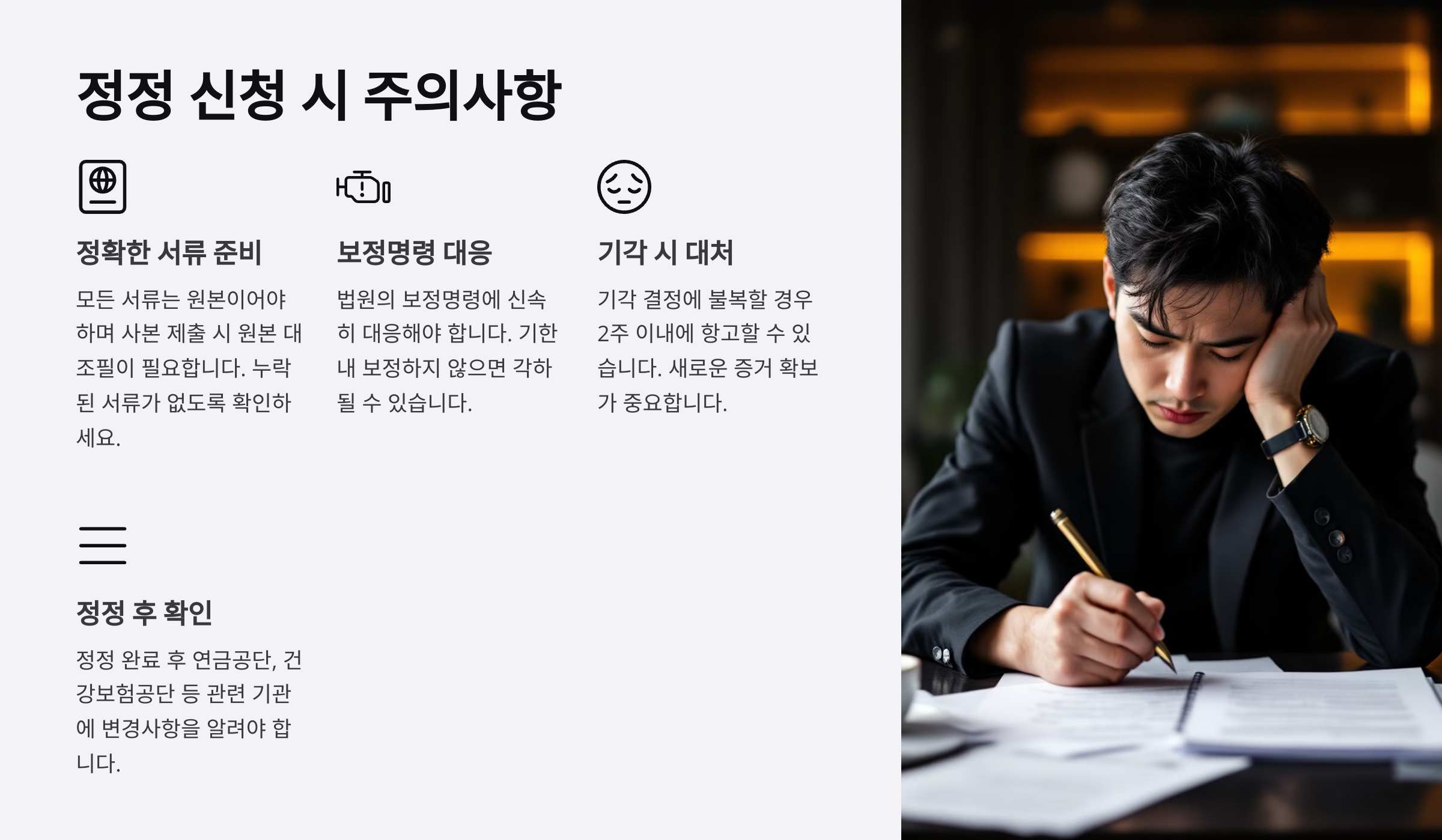 그럼, 정정 신청 시 반드시 기억해야 할 핵심 사항들을 정리해 볼게요.