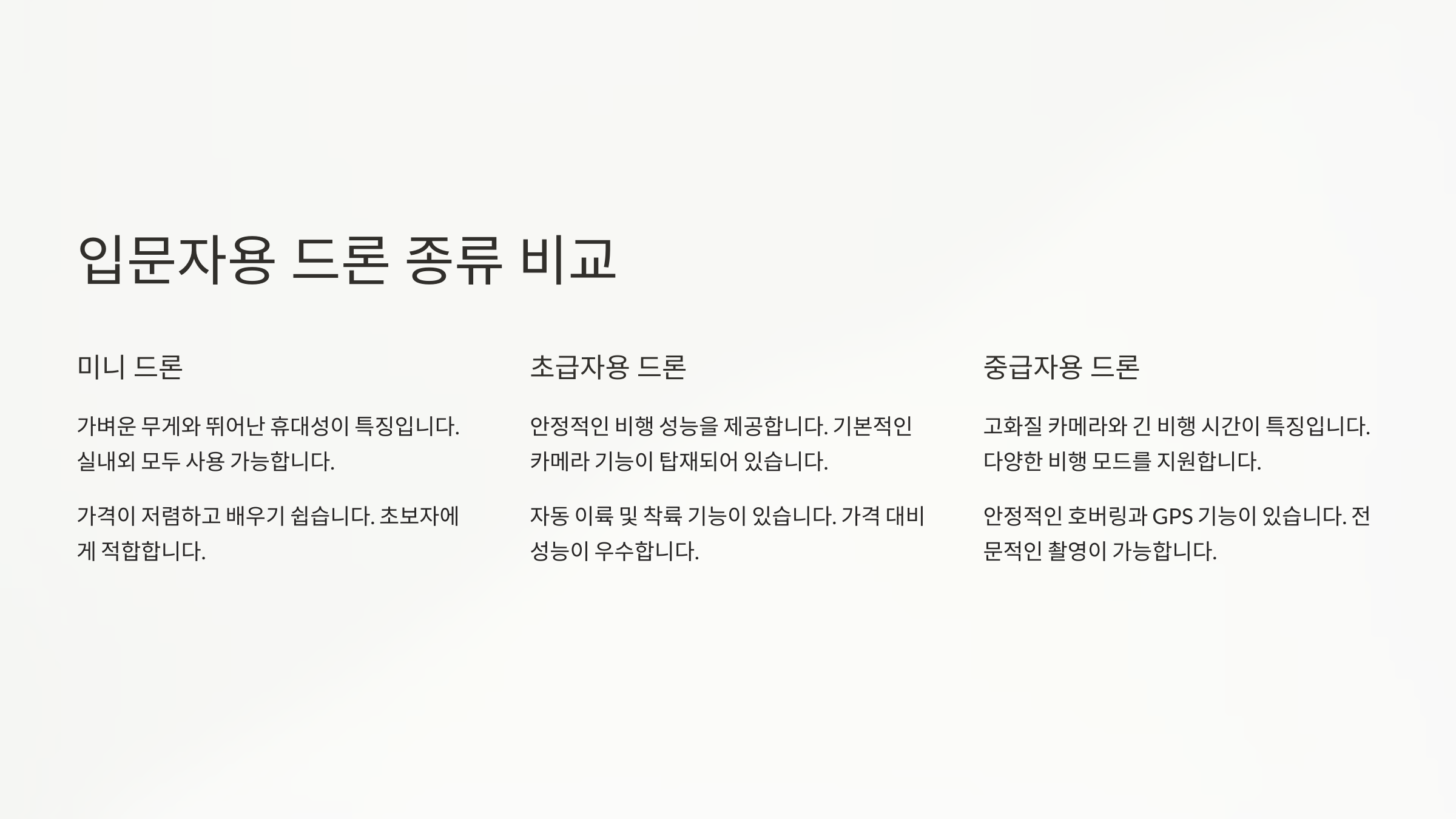 📦 입문자용 드론 종류 비교