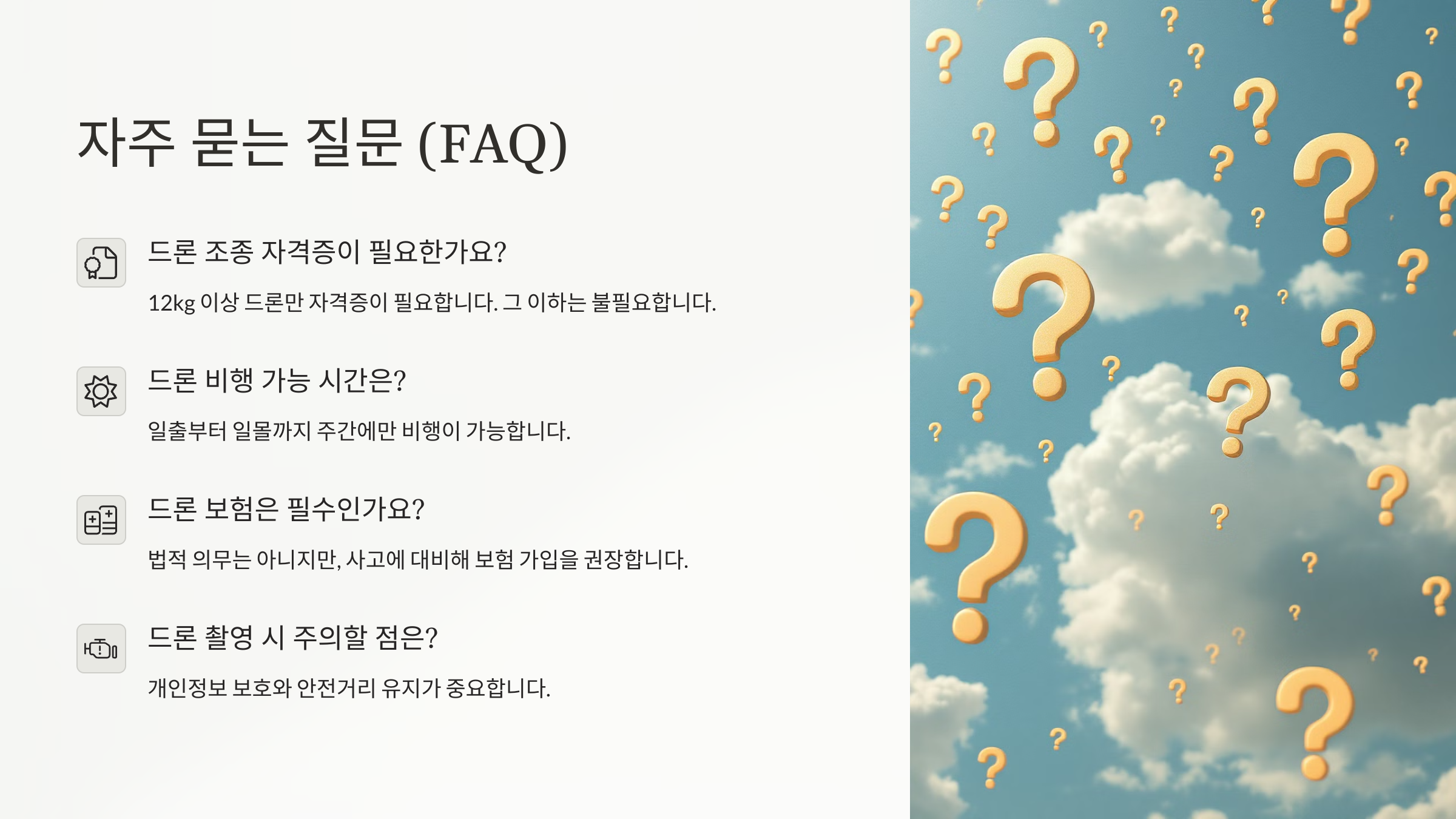 Q1. 드론 촬영을 시작하려면 자격증이 꼭 필요할까요?
