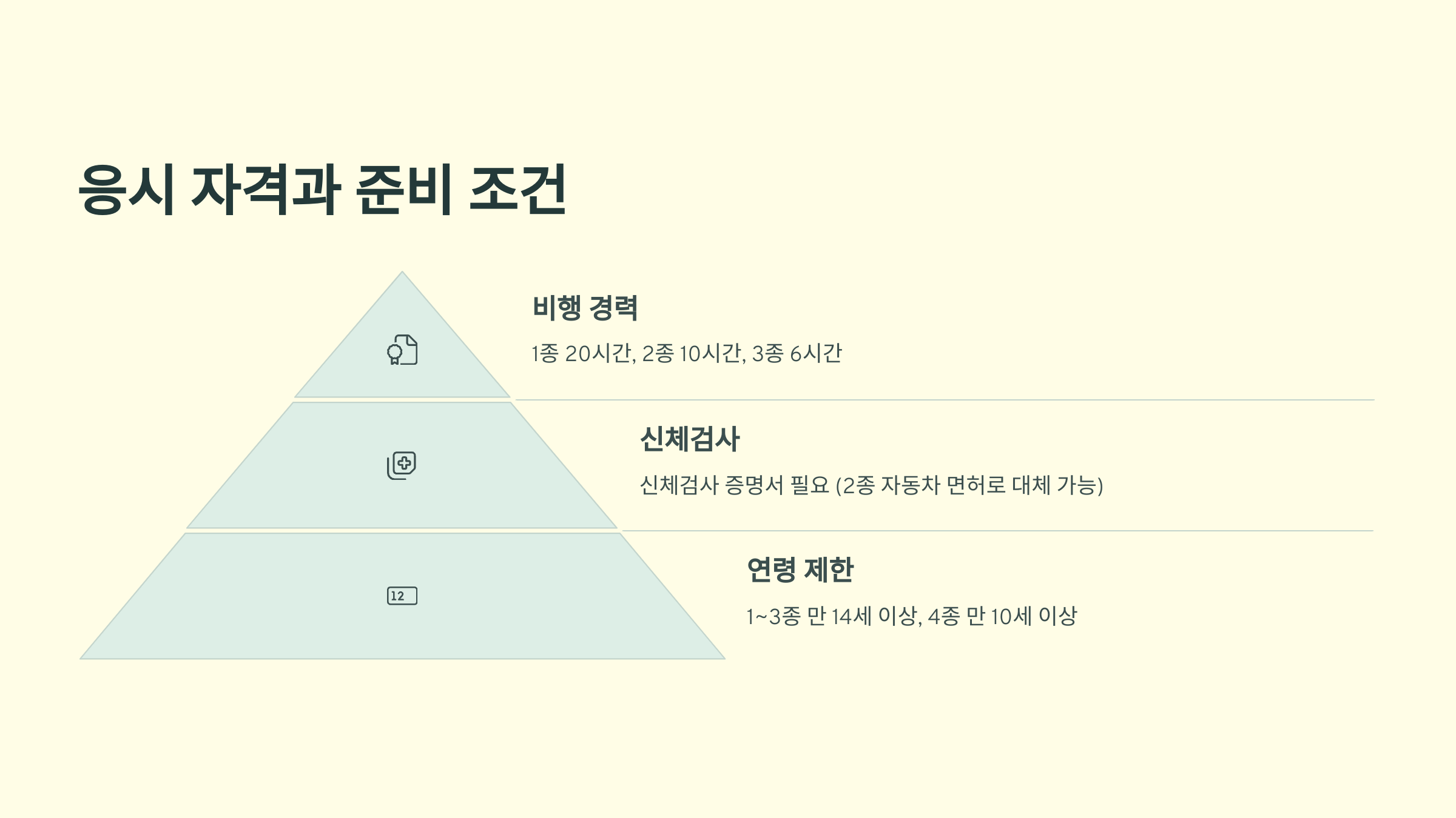 모든 종류의 자격증은 실기시험과 필기시험을 통과해야 하며, 종류가 높아질수록 난이도도 함께 올라가요. 특히 1종은 항공법, 비행역학, 통신 기술 등 전문지식이 요구되므로 학원 수강이 필수라는 점도 참고해야 해요.