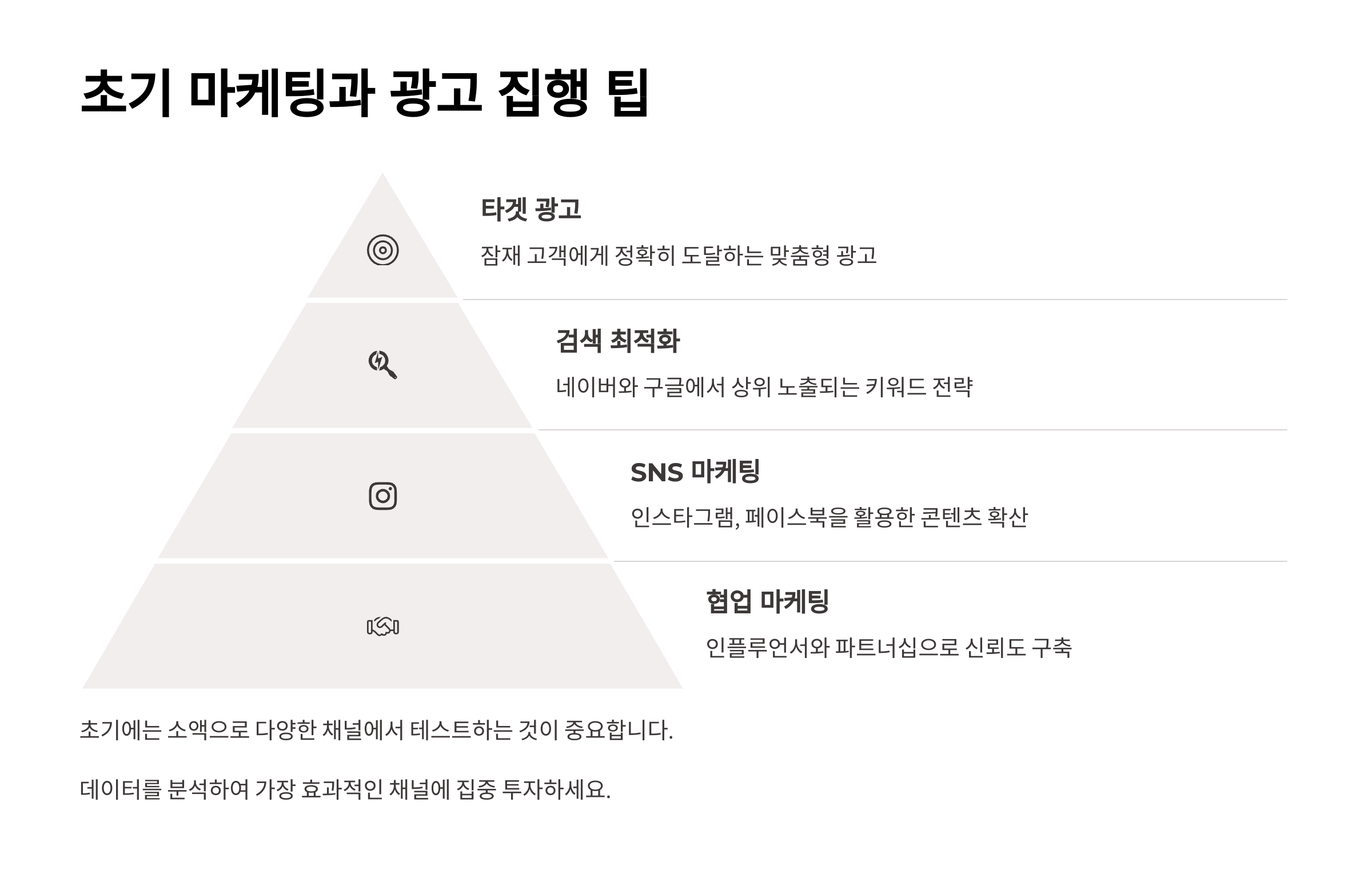 A5. 처음엔 블로그, 인스타, 카페에 제품 노출만 잘해도 돼요. 점차 검색광고나 리뷰마케팅으로 확장하면 충분히 성장 가능해요.