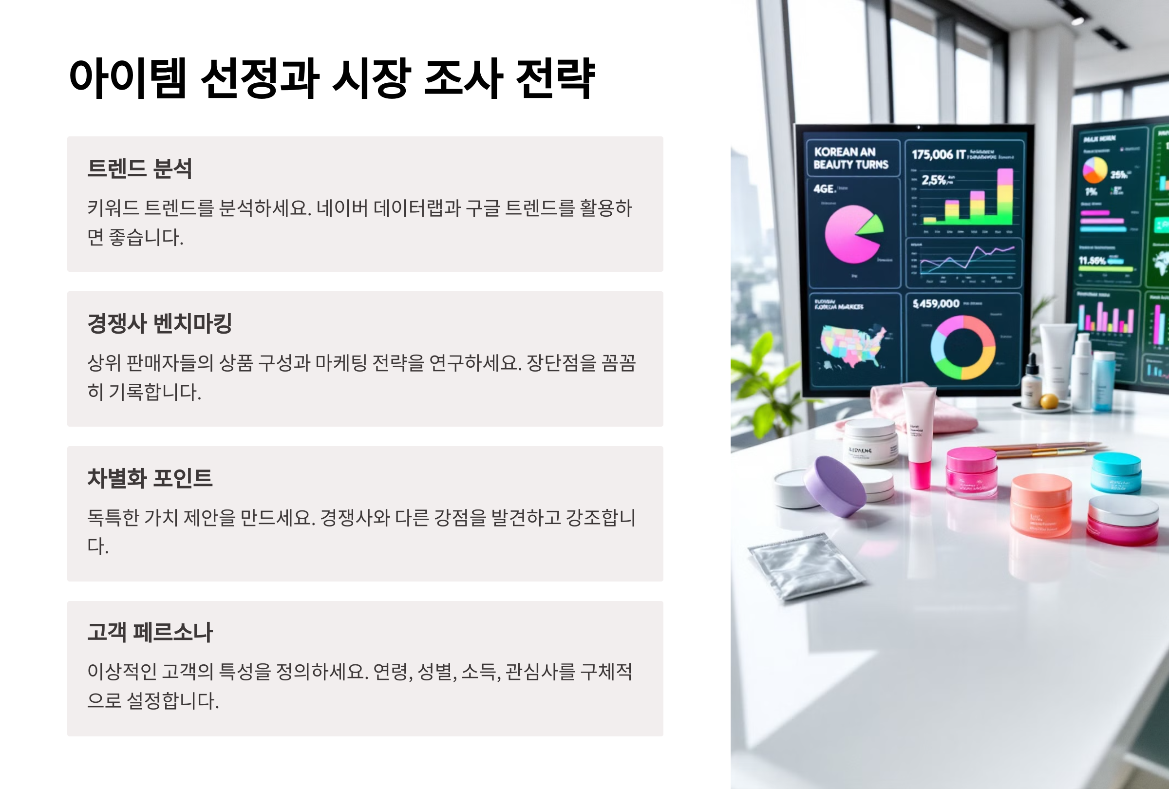 가장 먼저 해야 할 건 ‘키워드 조사’예요. 네이버 키워드플래너, 스마트스토어 트렌드, 쿠팡 랭킹 등을 통해 사람들이 어떤 제품을 검색하고 구매하는지 분석해보는 거예요. 너무 포화된 아이템은 피하고, 틈새 시장을 공략하는 게 좋아요.