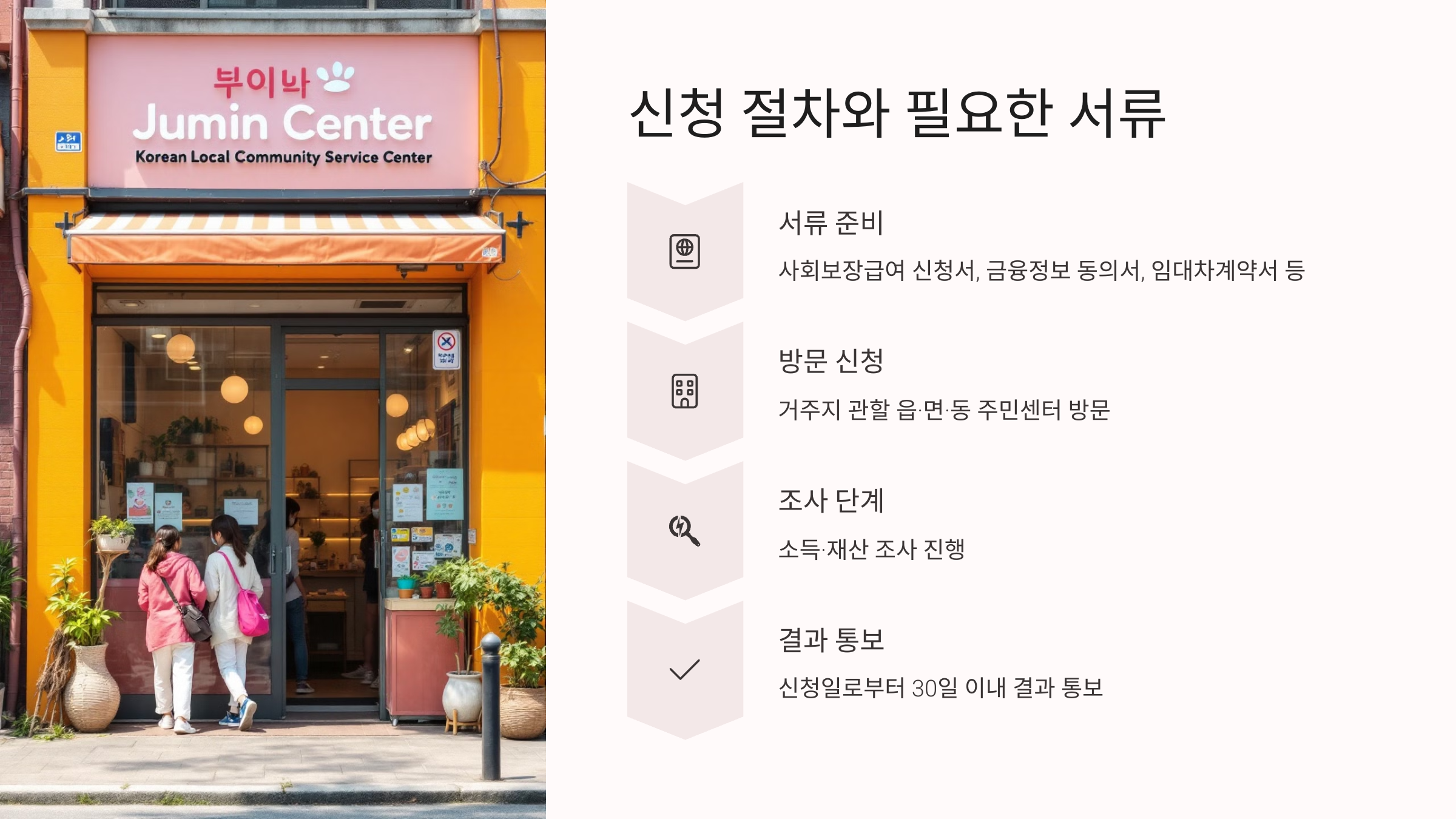 👉 다음 박스에서는 신청 절차와 준비서류, 그리고 소득·재산 기준을 표로 보기 쉽게 정리해드릴게요! 👇👇👇