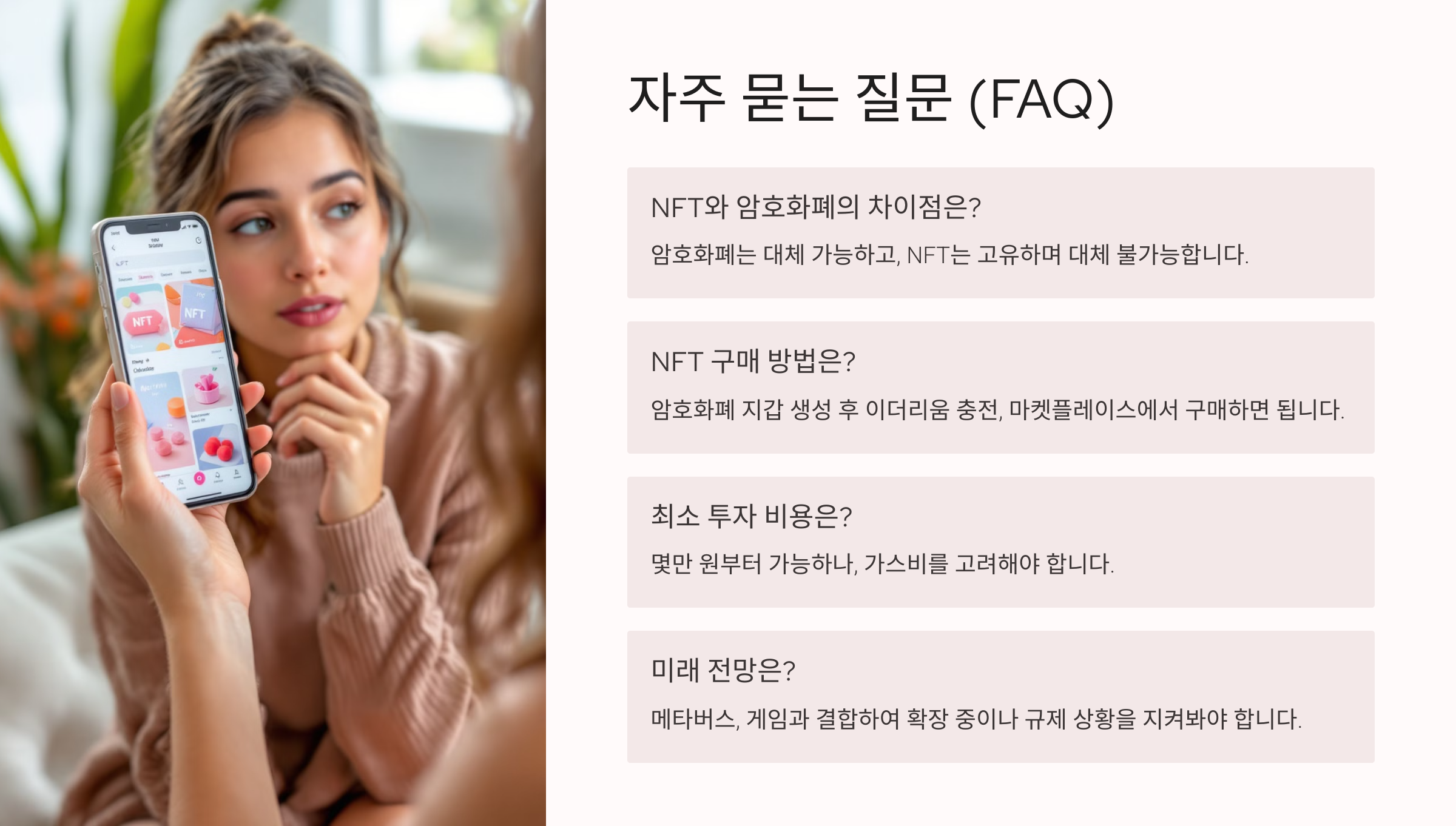 그리고 팁 하나! NFT를 처음 구매할 때는 가스비(Gas Fee)라는 수수료가 발생해요. 이더리움 네트워크에서 거래가 많을수록 수수료가 올라가는데, 거래가 적은 시간대에 하면 비용을 아낄 수 있어요. 이런 실전 팁은 뒤쪽에서 더 소개할게요 🔍