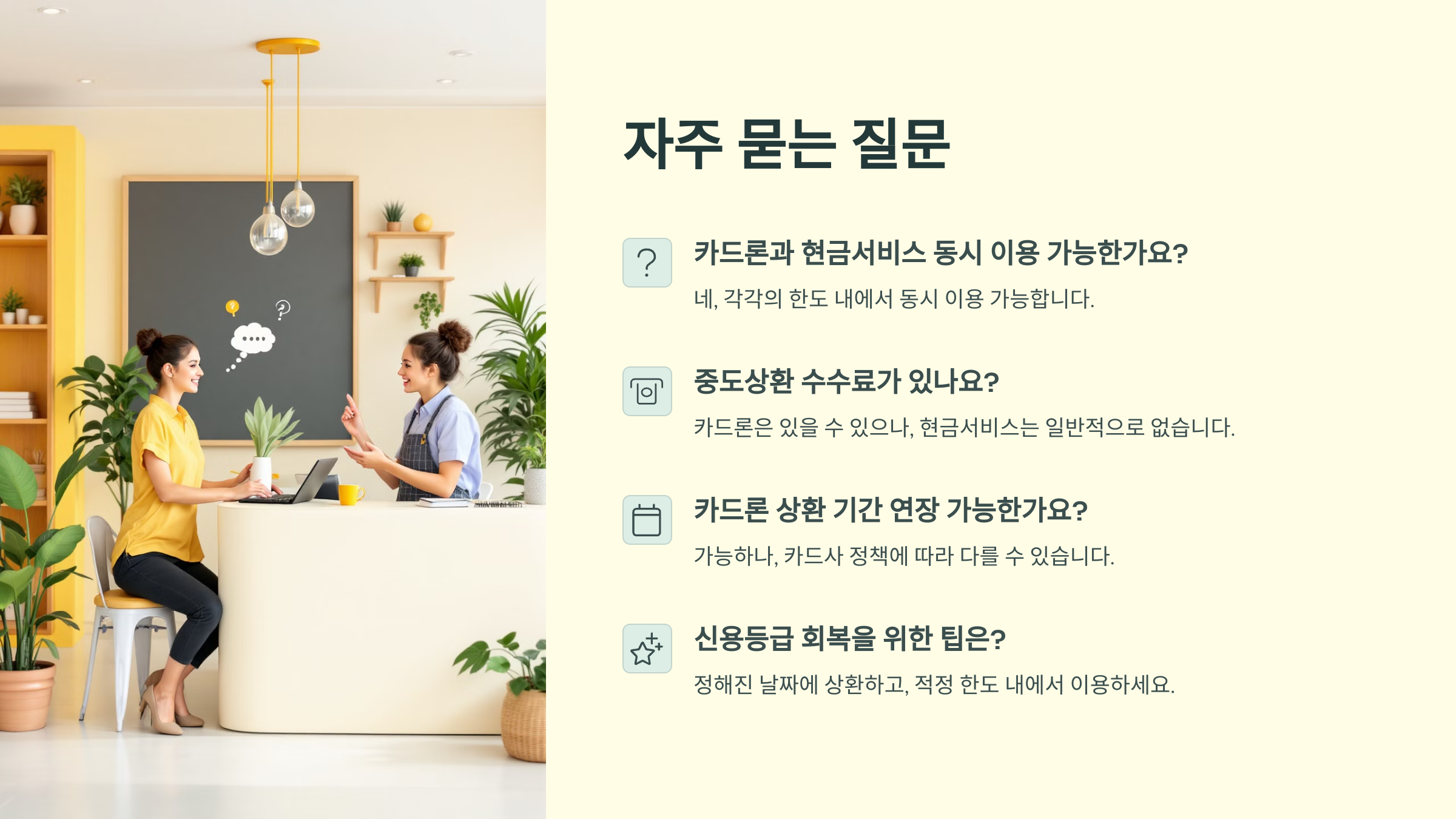 Q7. 카드론과 현금서비스 둘 다 동시에 이용 가능한가요?