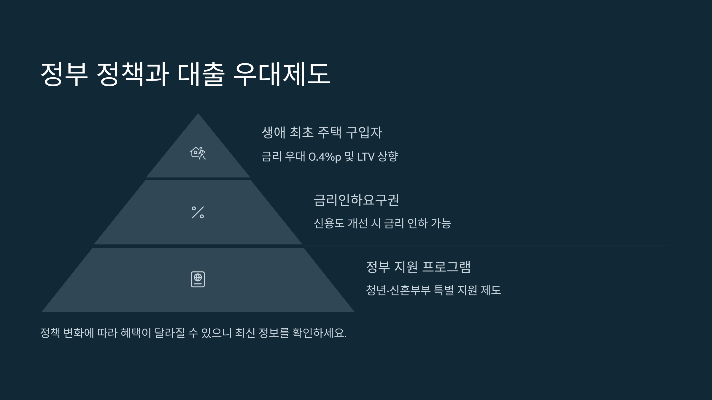 주택담보대출은 개인의 선택도 중요하지만, 정부 정책이 큰 영향을 줘요. 특히 무주택자, 신혼부부, 청년, 저소득층을 위한 지원제도는 혜택이 꽤 커서 꼭 알아두는 게 좋아요. 🌟