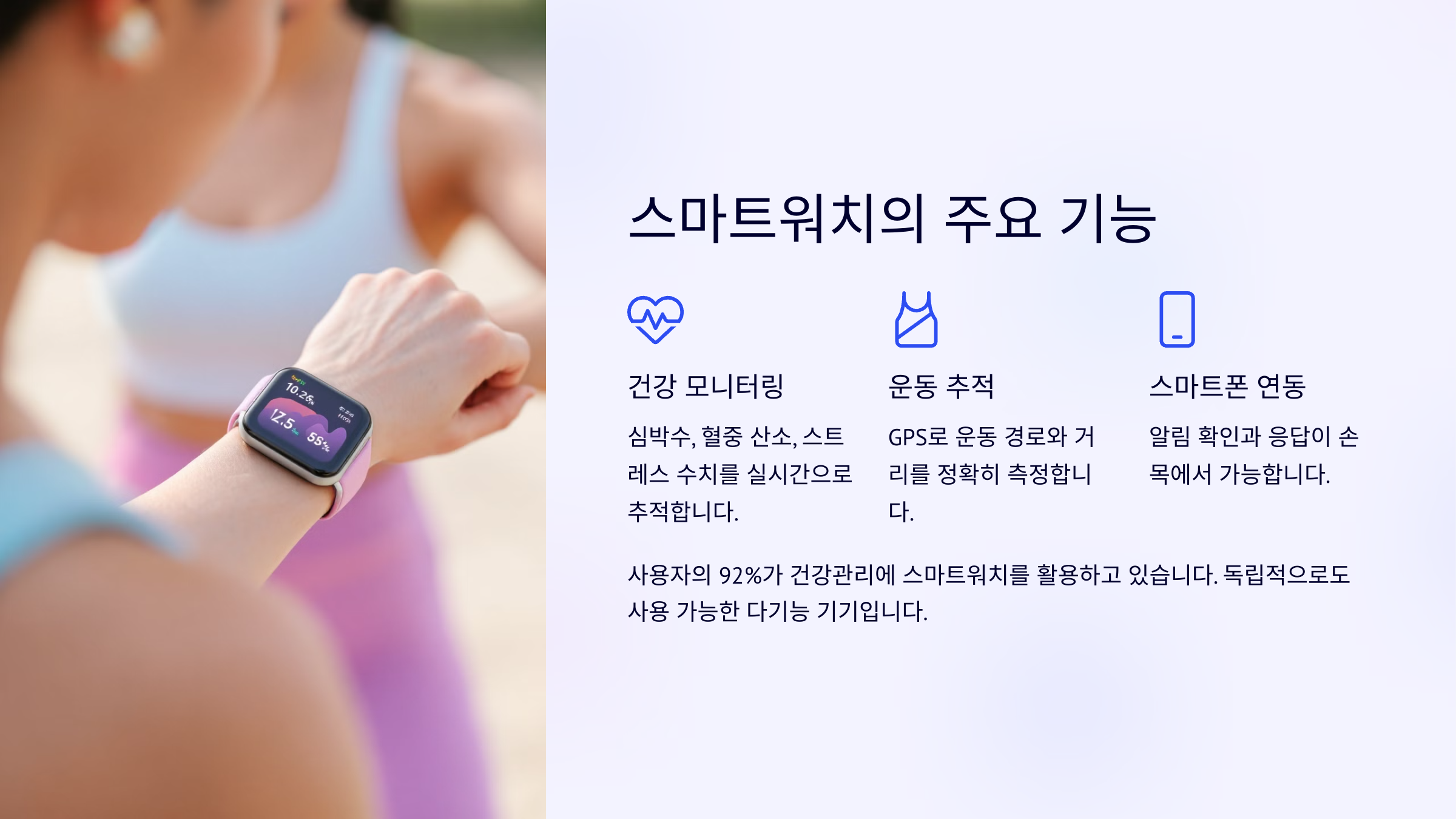 스마트워치는 단순한 시계가 아니라, 다양한 기능을 제공하는 웨어러블 디바이스예요. ⌚✨