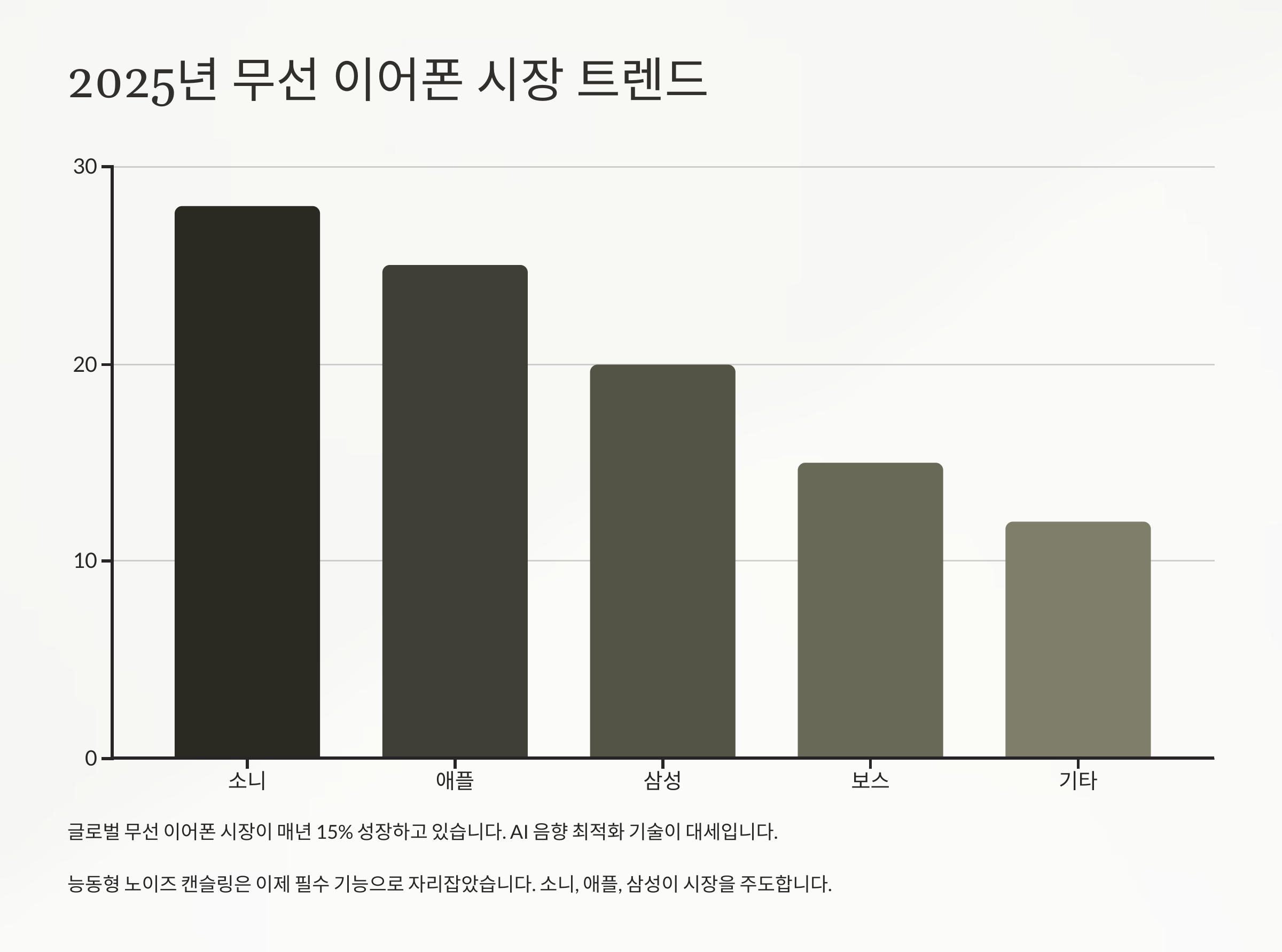 무선 이어폰을 선택할 때 가장 중요한 요소는 무엇일까요? 음질, 노이즈 캔슬링, 배터리, 착용감까지 꼼꼼히 따져봐야 해요! 🎧🔍📌 무선 이어폰 선택 시 고려할 점