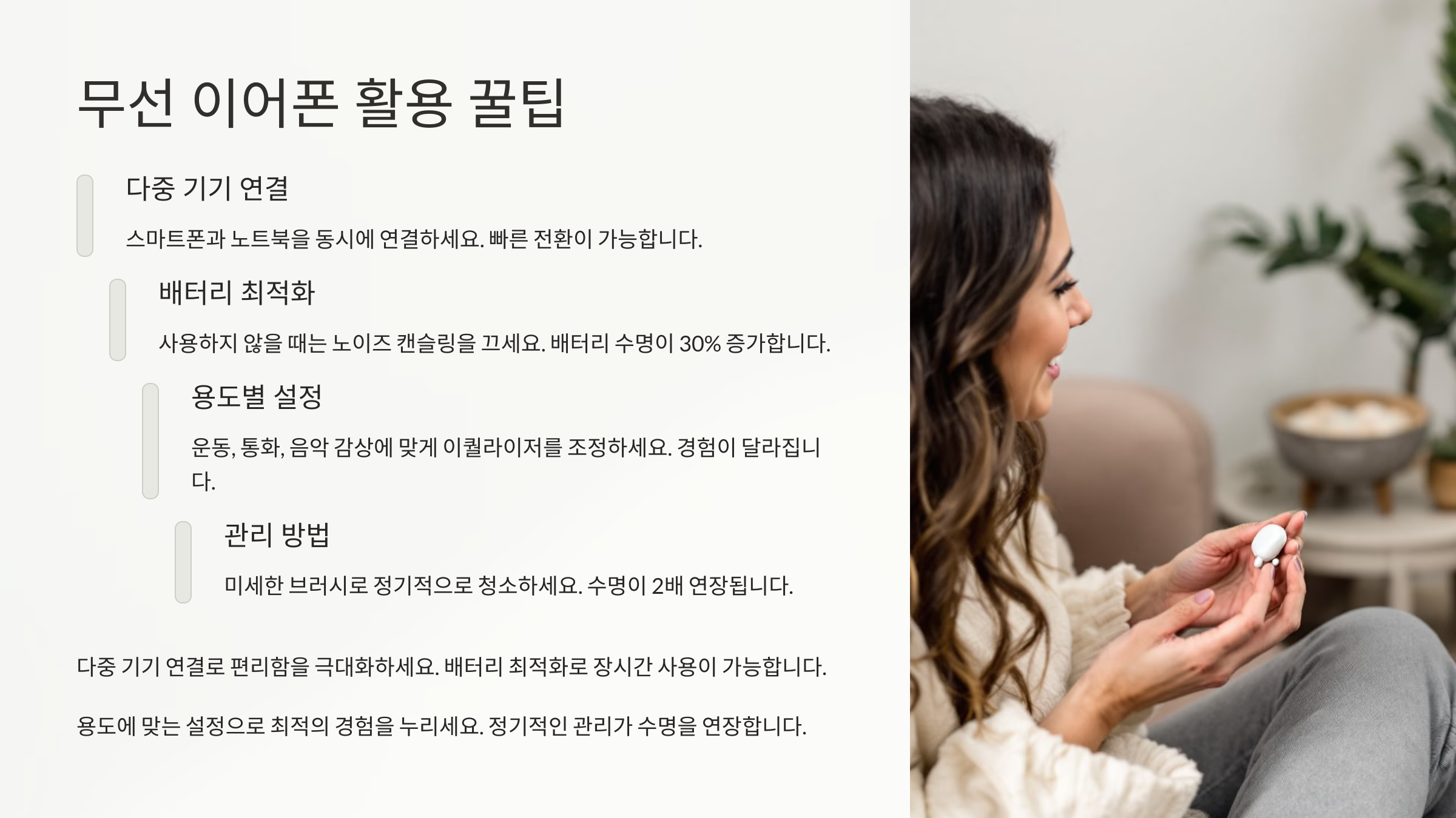 이제, 무선 이어폰을 더 잘 활용하는 꿀팁을 알아볼까요? 🎶✨