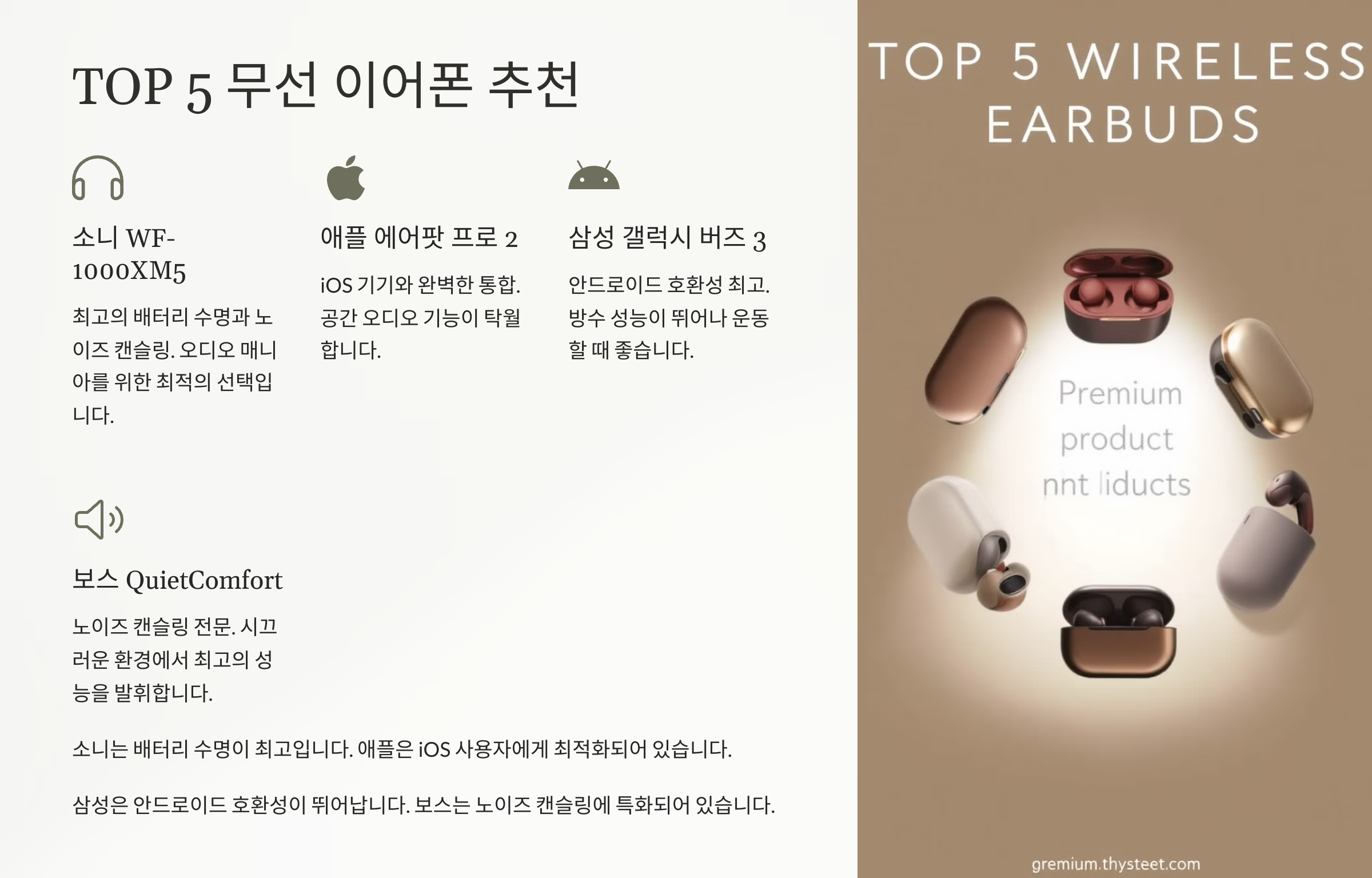 음질 좋은 무선 이어폰을 찾고 계신가요? 🎶 통화 품질, 노이즈 캔슬링, 배터리 성능까지 비교해 드릴게요! 🔊
