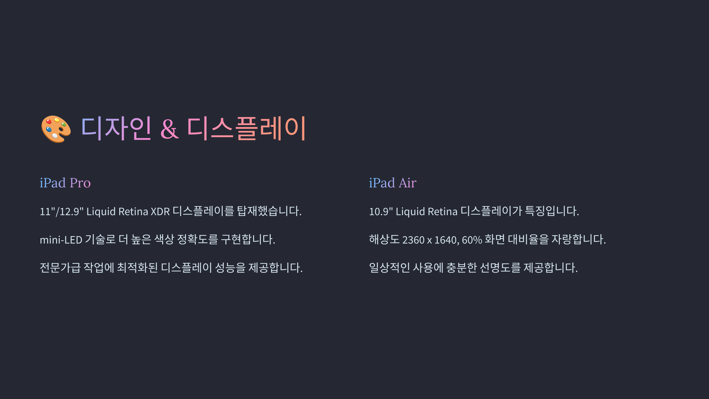 📌 아이패드 프로 vs 에어 디자인 & 디스플레이 비교