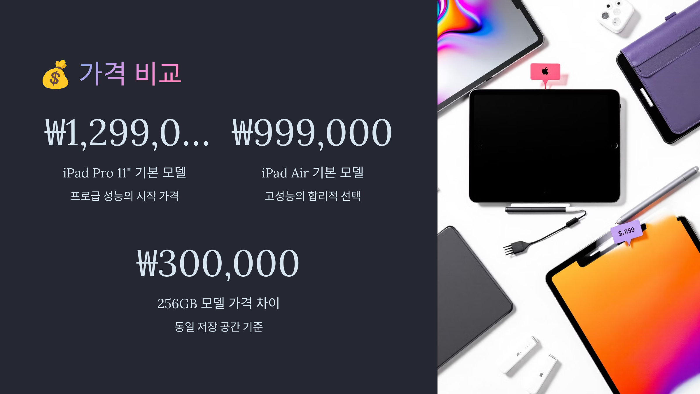 다음으로, 아이패드 프로와 에어 가격 비교를 살펴볼까요? 💰