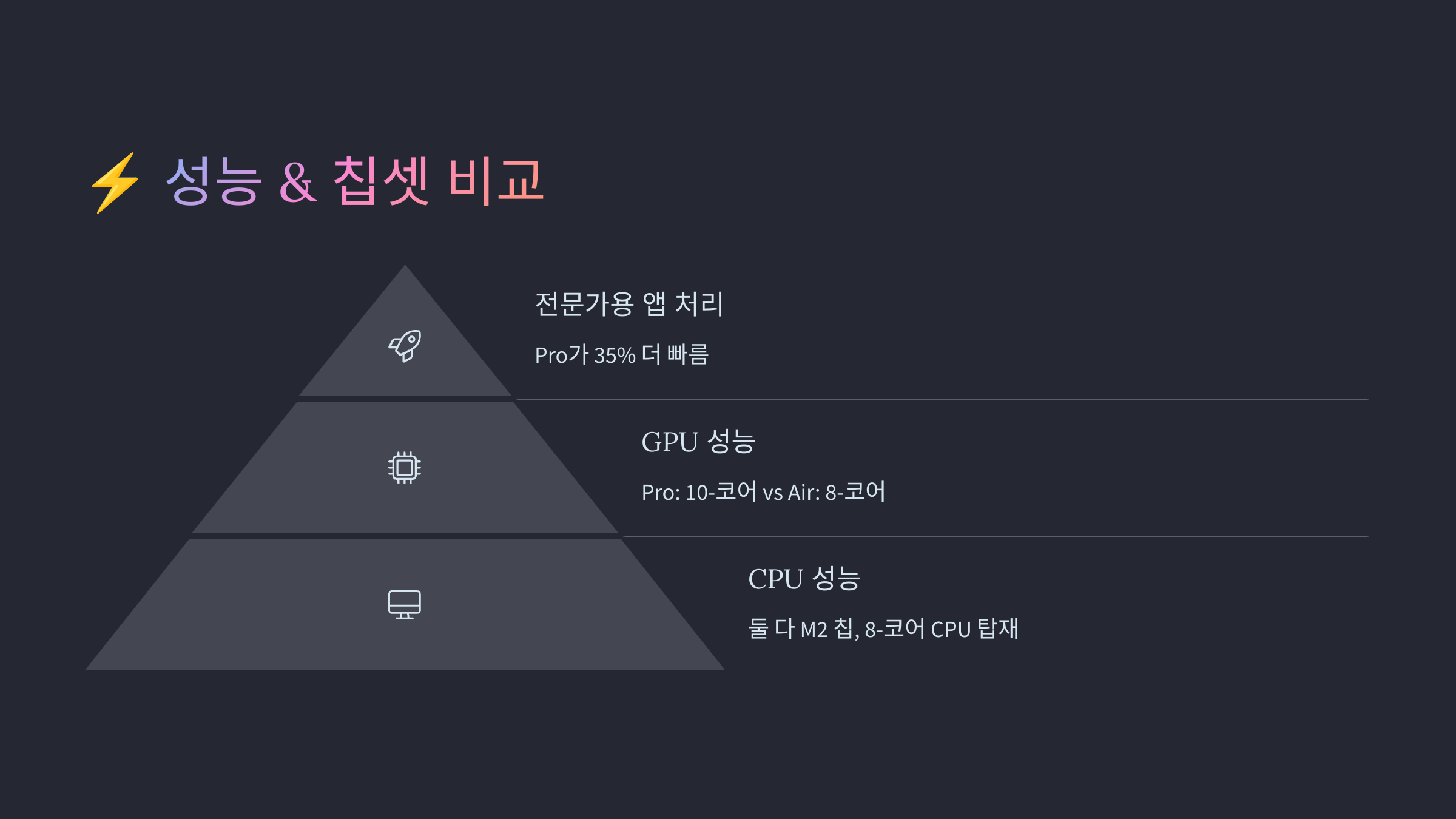 📌 고사양 작업을 할 거라면 프로! 일반적인 사용은 에어도 충분해요. 😃