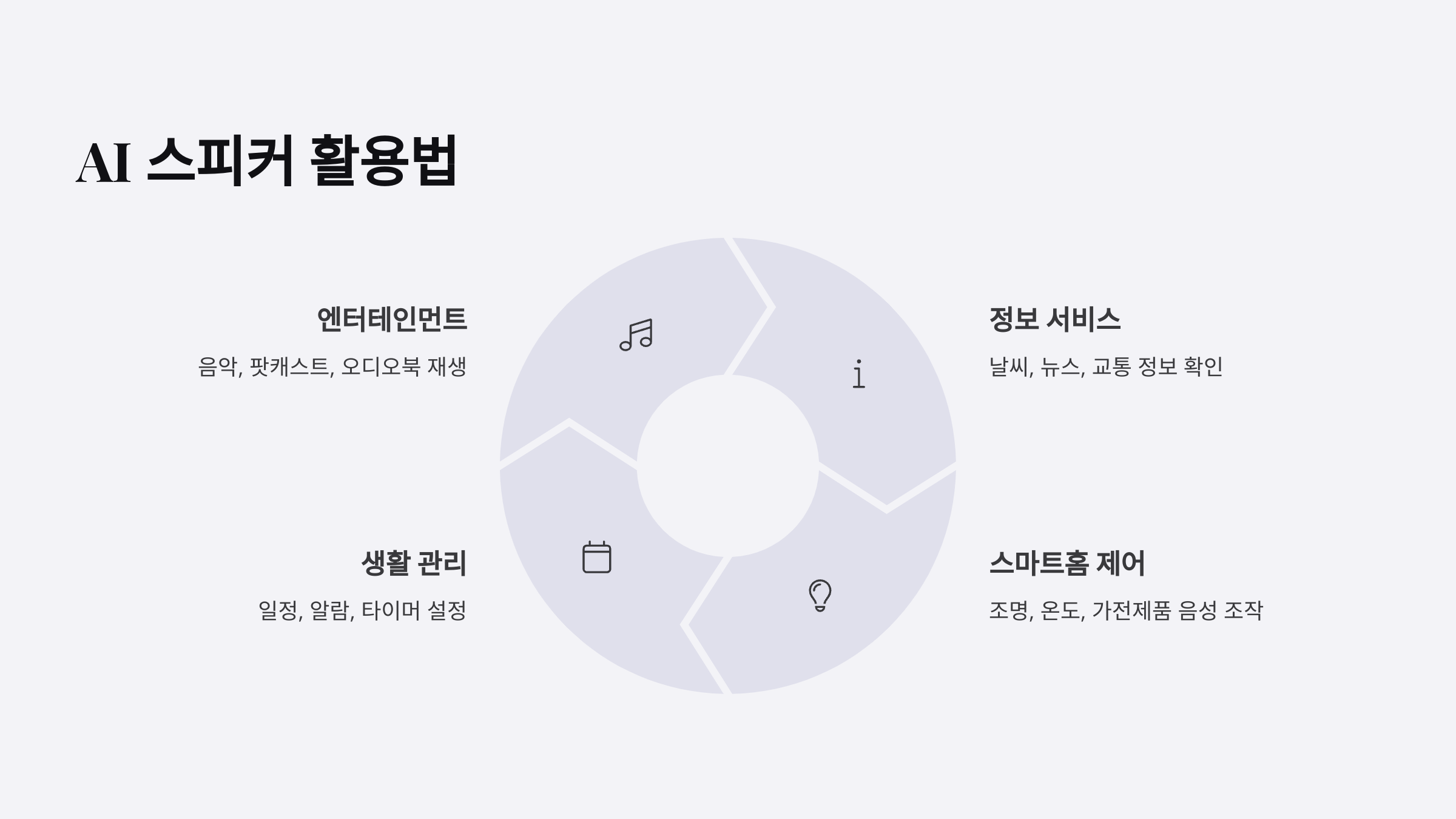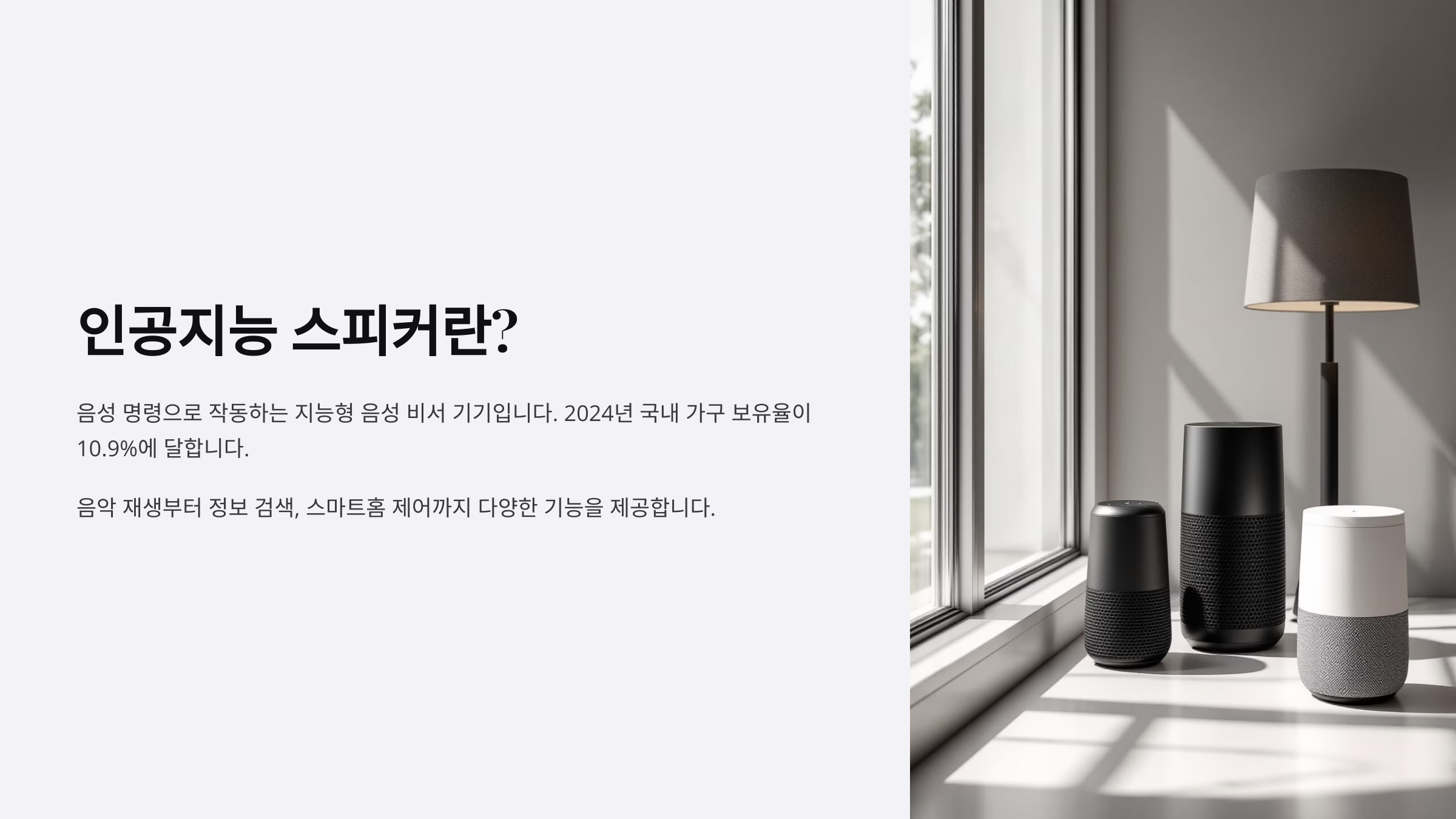 AI 스피커는 단순히 음악을 듣는 것뿐만 아니라 일정 관리, 스마트홈 제어, 음성 명령 등 다양한 기능을 활용할 수 있어요! 🎙🏡