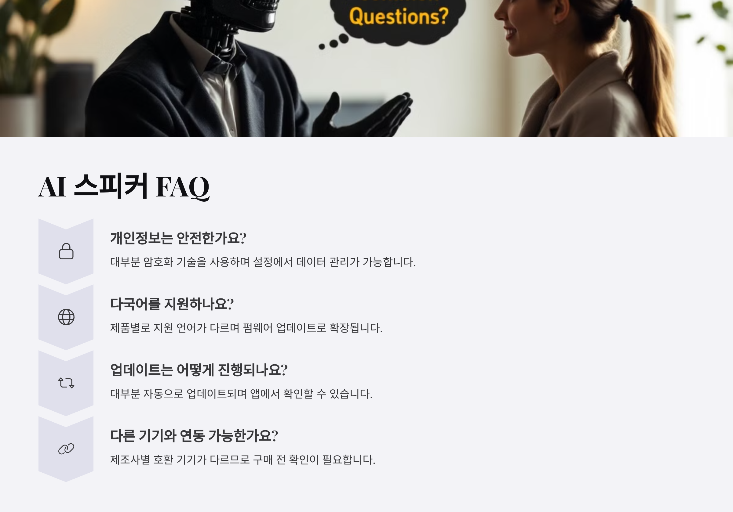 마지막으로, AI 스피커 관련 FAQ를 확인해볼까요? ❓