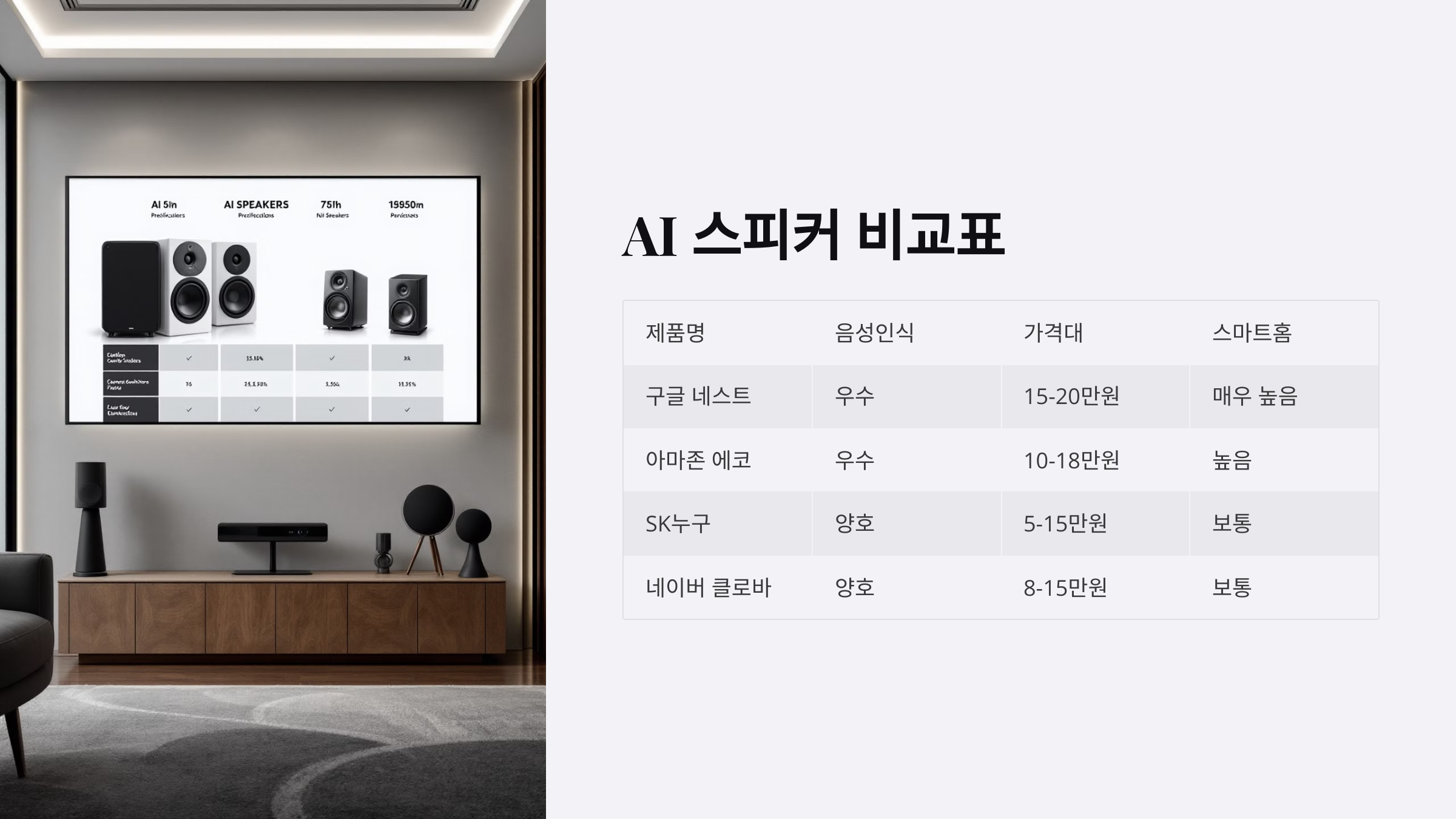 다음으로, AI 스피커 비교표를 통해 한눈에 살펴볼까요? 📊