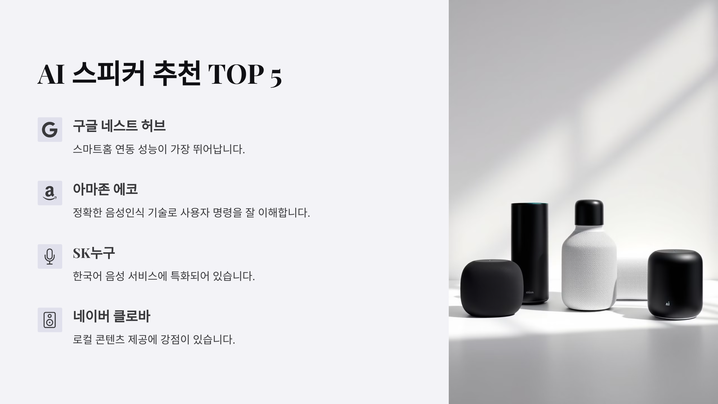 이번 글에서는 2025년 기준 인기 있는 AI 스피커 TOP 5를 추천해 드릴게요! 🏆