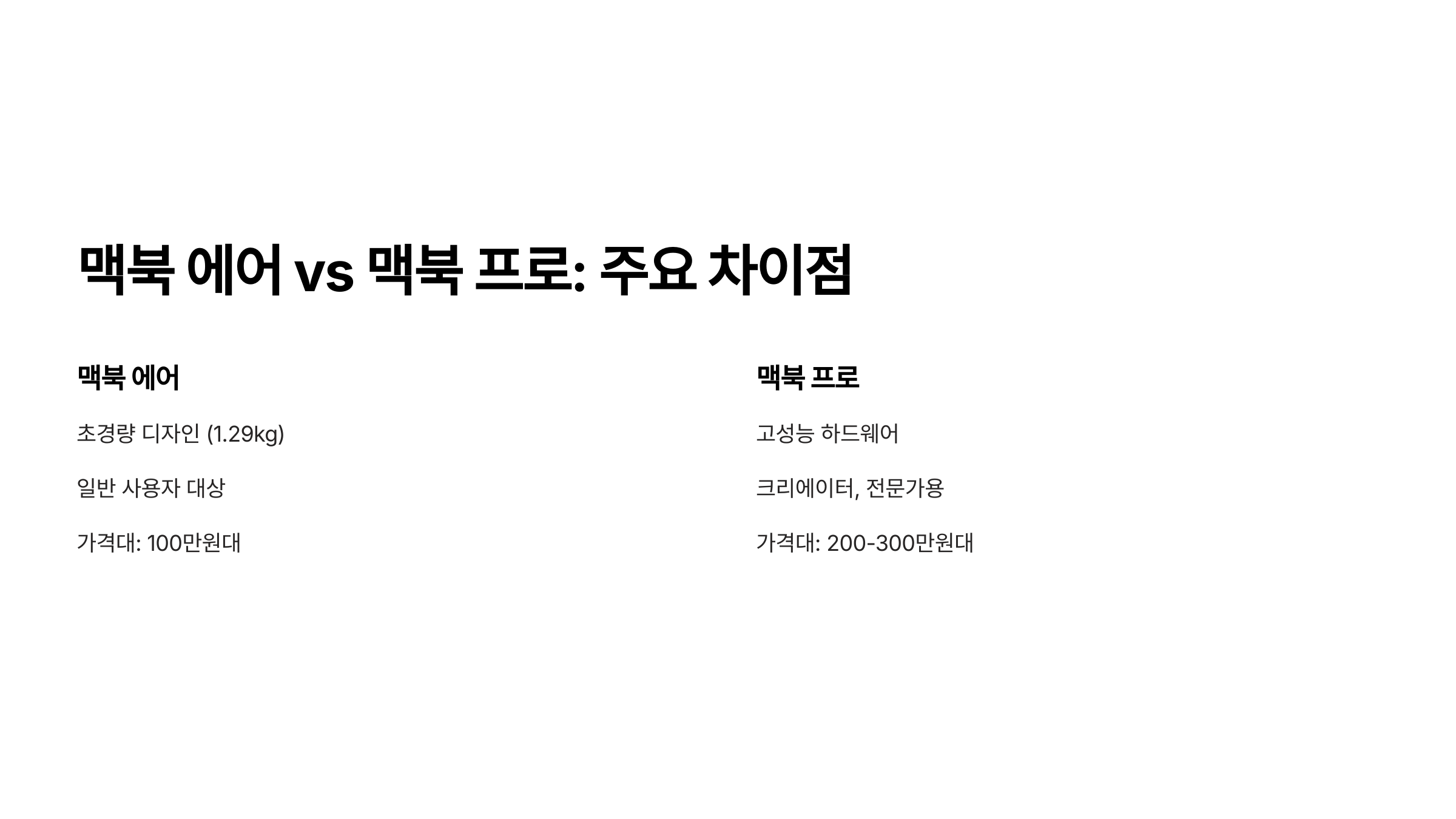 💻 맥북 에어 vs 프로 주요 차이점