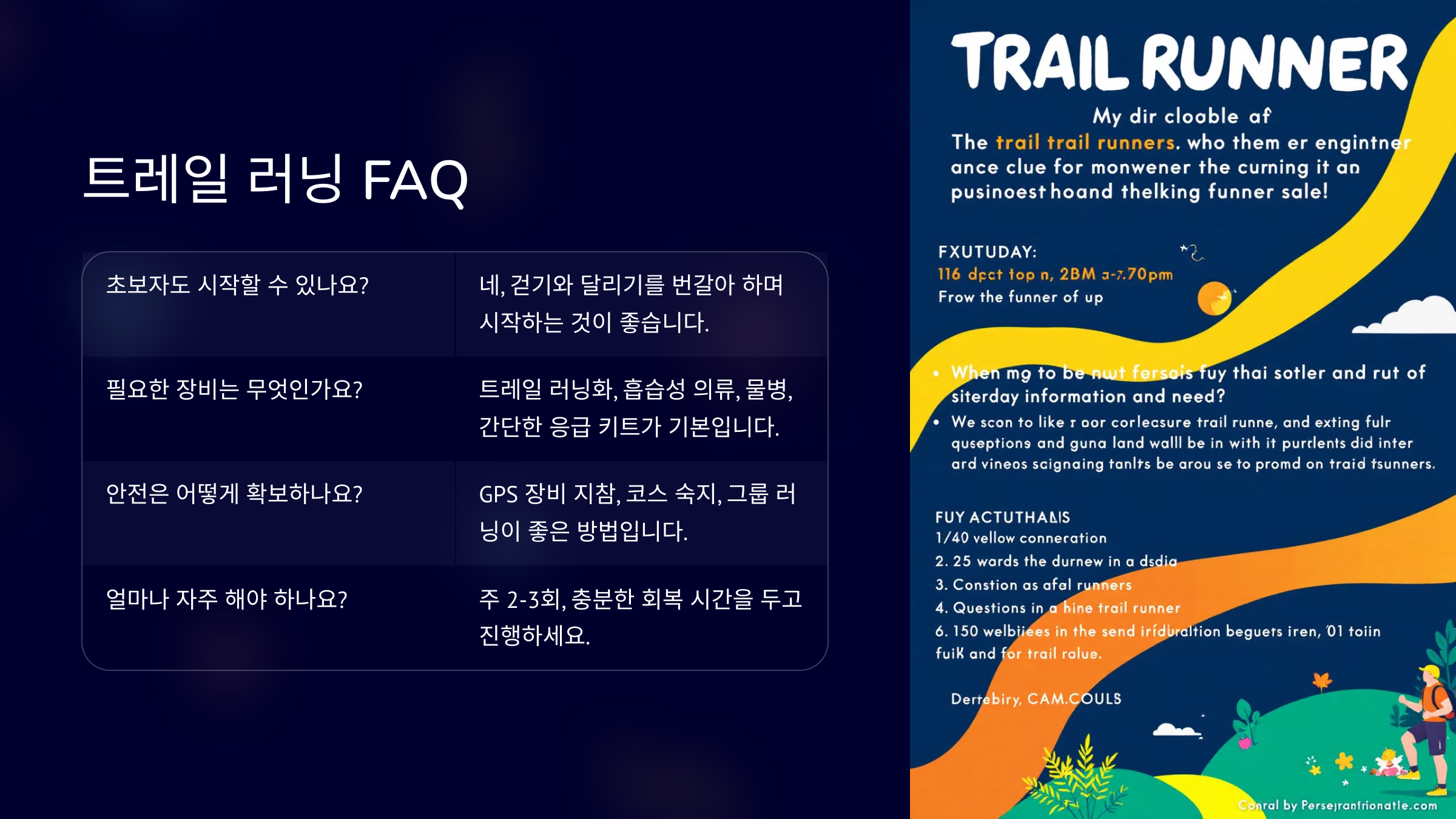 이렇게 비교해보면 트레일 러닝은 단순한 체력 단련을 넘어서 전체적인 삶의 질을 높여주는 운동이라는 걸 알 수 있어요. 몸과 마음을 동시에 리셋하고 싶은 사람들에게 최고의 선택이 될 수 있죠!