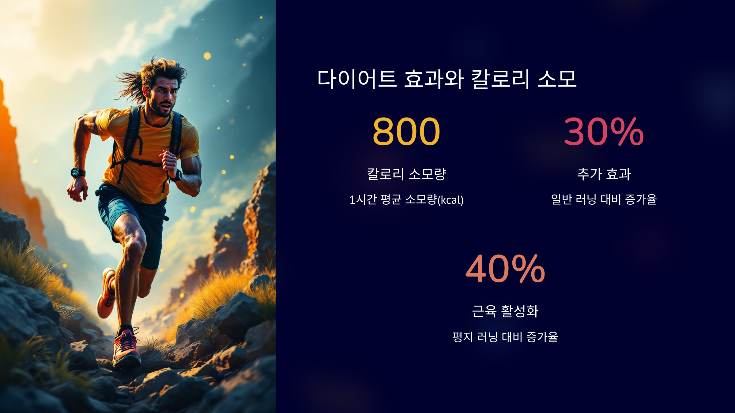 트레일 러닝은 평지 러닝보다 평균 1.5배 이상의 칼로리를 소모한다고 알려져 있어요. 그 이유는 경사가 급하거나, 바닥이 울퉁불퉁한 코스를 달릴 때 더 많은 에너지를 써야 하기 때문이에요. 이건 마치 전신 웨이트 운동과 비슷한 효과를 주죠.
