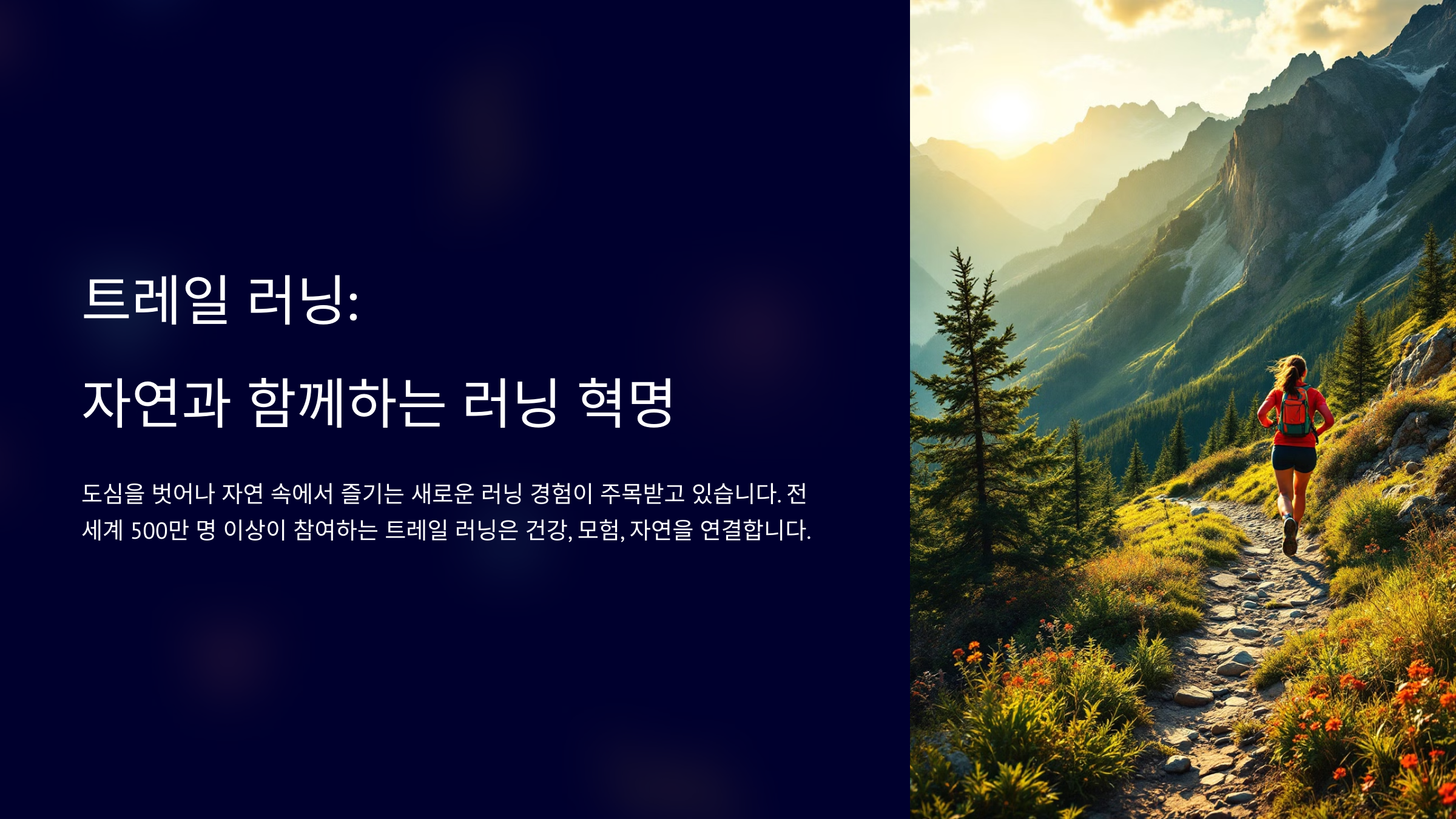 트레일 러닝은 산길이나 흙길, 오솔길처럼 포장이 되지 않은 자연 지형을 달리는 운동이에요. 일반 도심에서 하는 로드 러닝과 달리, 자연과 어우러지는 활동으로 심리적 힐링 효과도 상당히 크답니다. 트레일 러닝은 단순히 빠르게 달리는 것보다는 지형의 변화에 맞춰 천천히, 때로는 걷고 뛰는 방식으로 진행돼요.