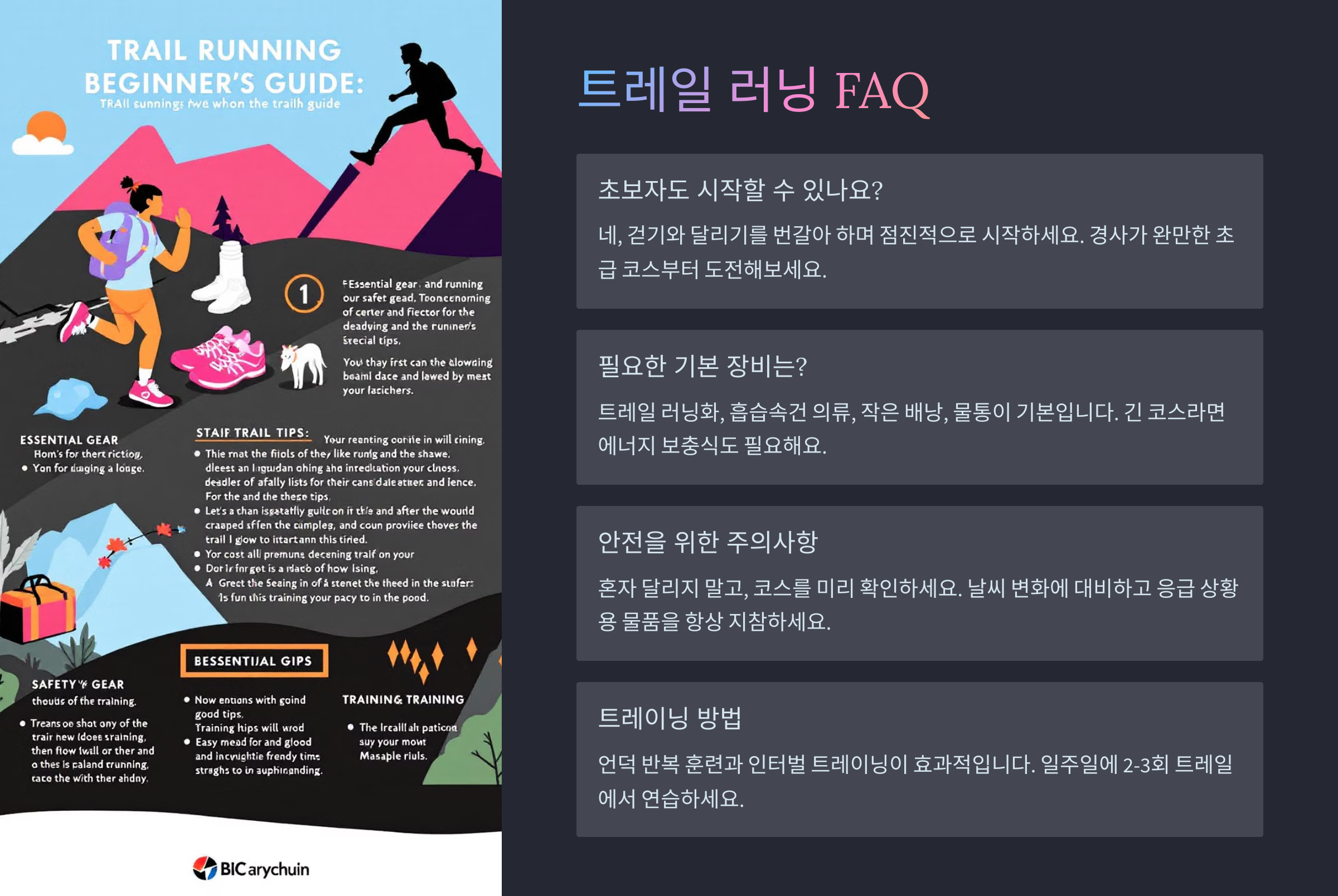 Q1. 트레일 러닝은 일반 조깅보다 칼로리 더 많이 소모하나요?A1. 네! 지형이 복잡하고 근육 사용 범위가 넓기 때문에 칼로리 소모가 훨씬 많아요.
