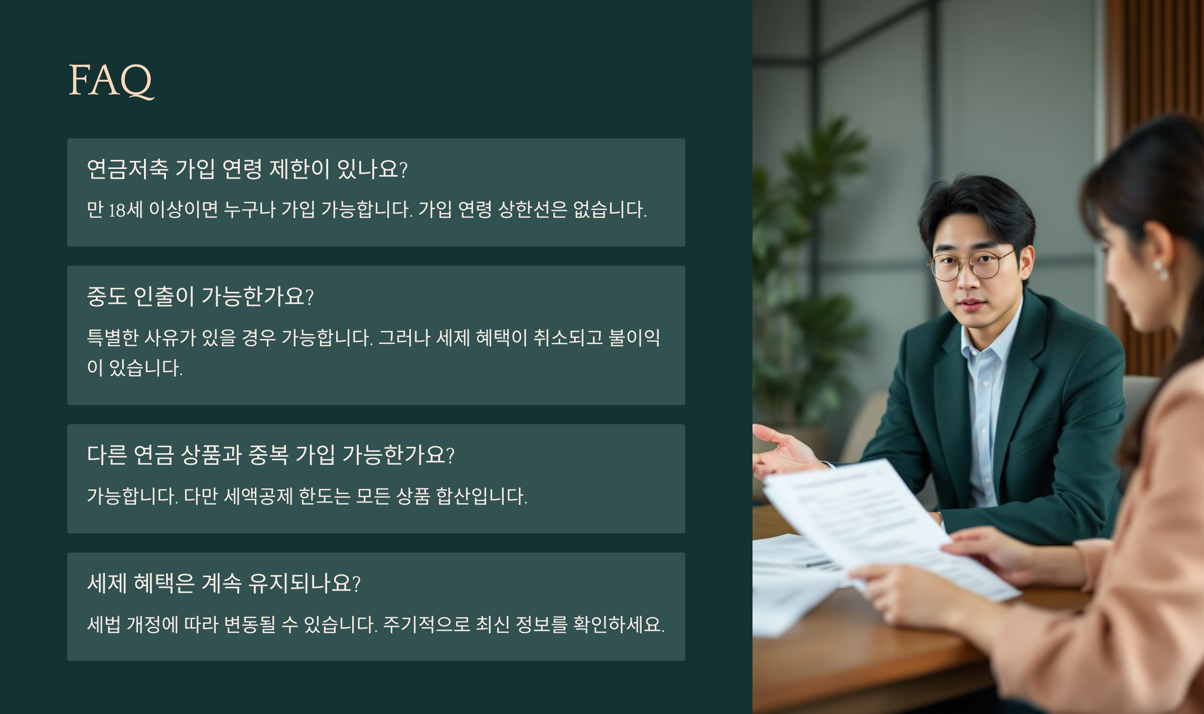 이제 마지막으로, 사람들이 자주 묻는 질문들만 모은 FAQ로 연금저축보험에 대한 궁금증을 정리해볼게요! 👇