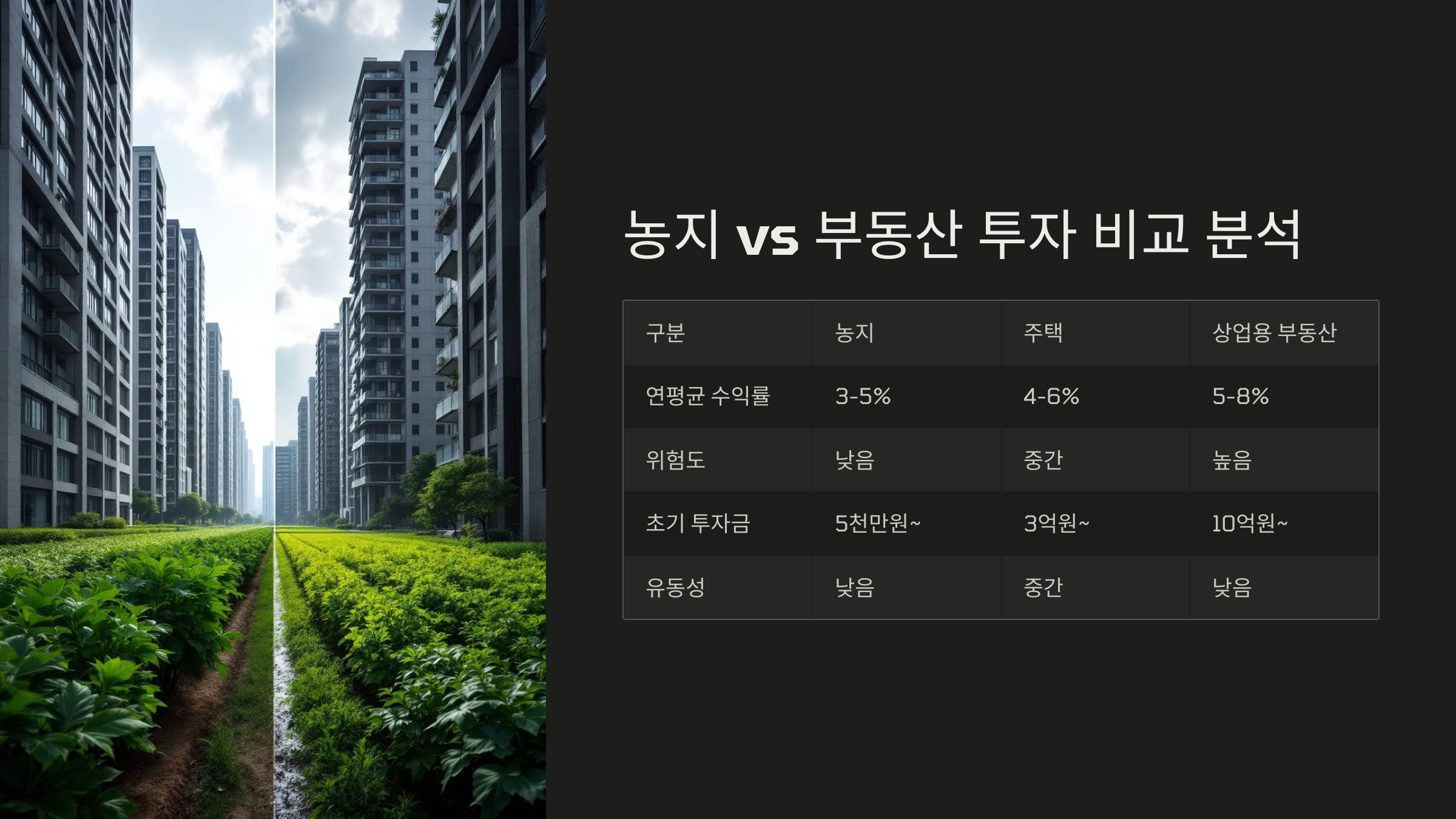 📊 농지 vs 일반 부동산 투자 수익률 비교
