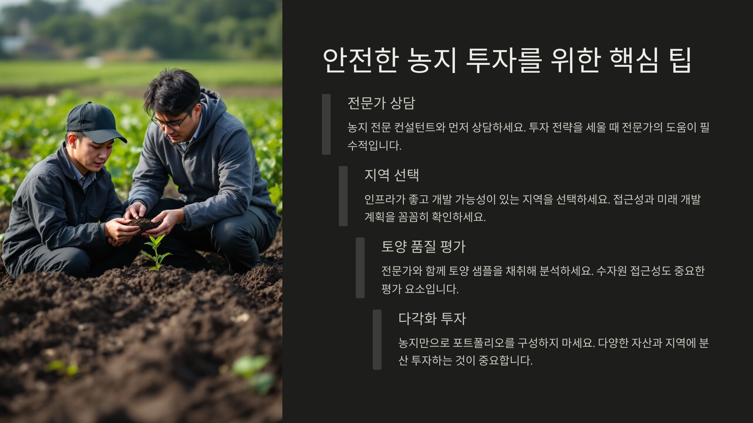 2025년 기준 농지 투자는 투기 목적이 아닌 ‘실경작’ 조건에 따라 취득해야 하며, 관련 법적 제약도 까다로운 편이에요. 그렇기 때문에 철저한 사전 조사가 필요해요.