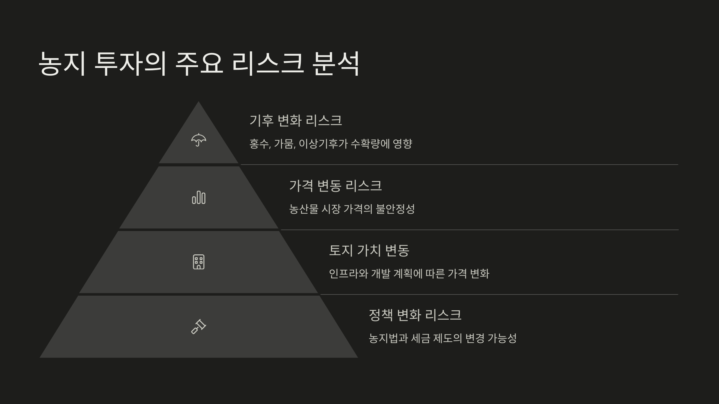 농지 투자의 가장 큰 리스크는 바로 활용 제한이에요. 주택이나 상업시설처럼 자유롭게 건축이 불가능하고, 특정 용도 외에는 사용이 제한돼요.