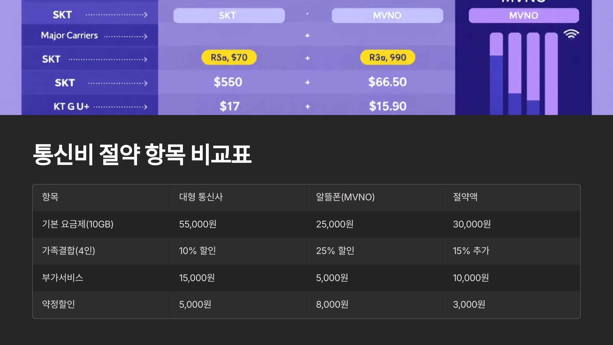 📊 통신비 절약 항목 비교표