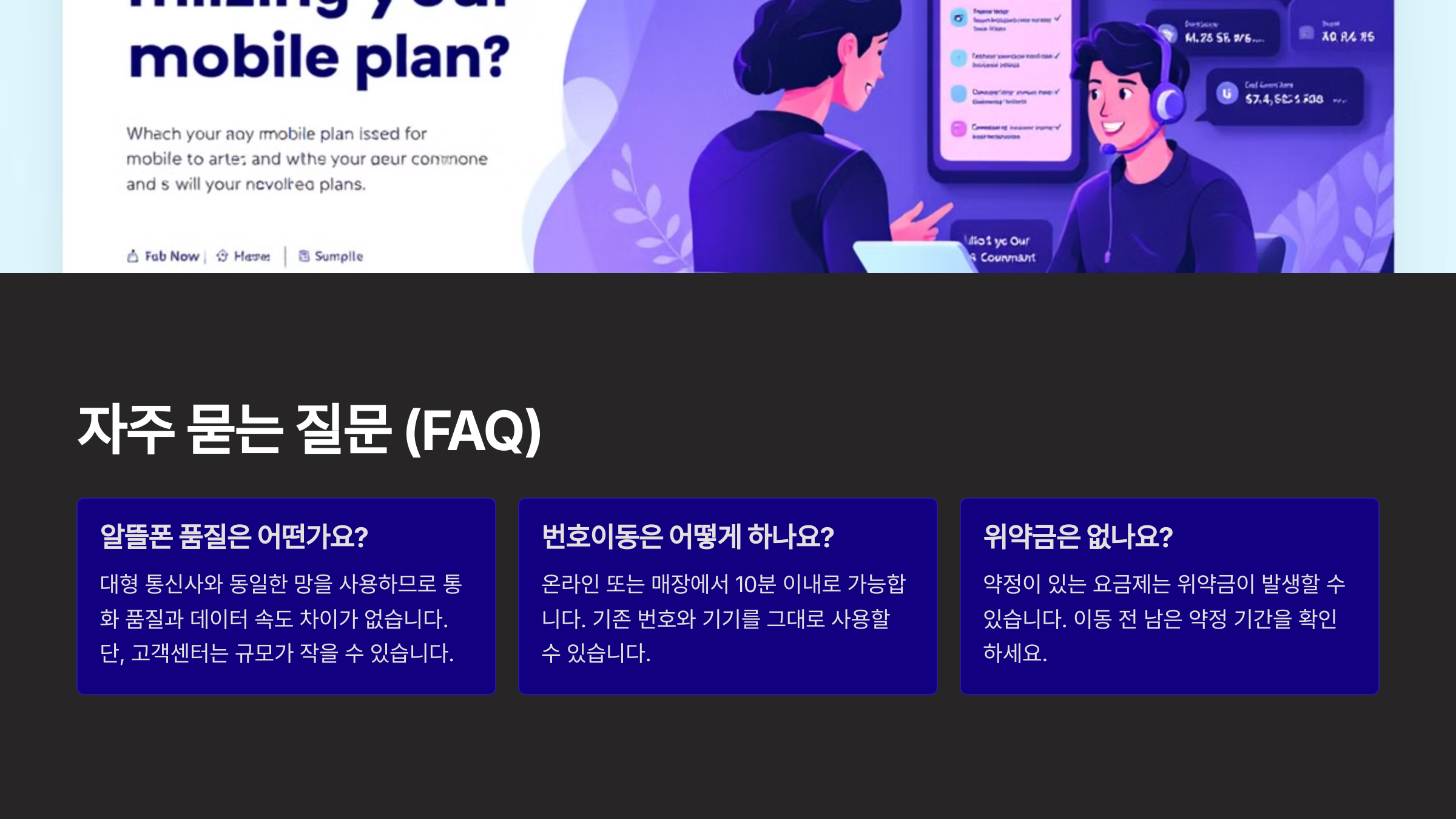 A2. 전혀 아니에요. SKT/KT/LGU+의 망을 그대로 사용해서 품질은 동일해요.