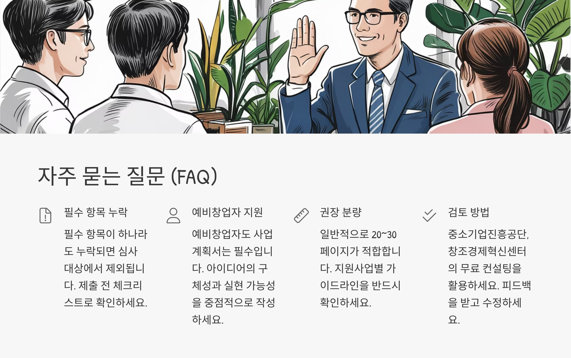 이제 우리도 이 사례들을 참고해서, 사업계획서에 반영할 수 있는 포인트를 정리해보면 좋아요. 다음 섹션에서는 자주 묻는 질문들을 FAQ 형식으로 소개할게요! 마지막까지 쭉 따라와요! 🙌
