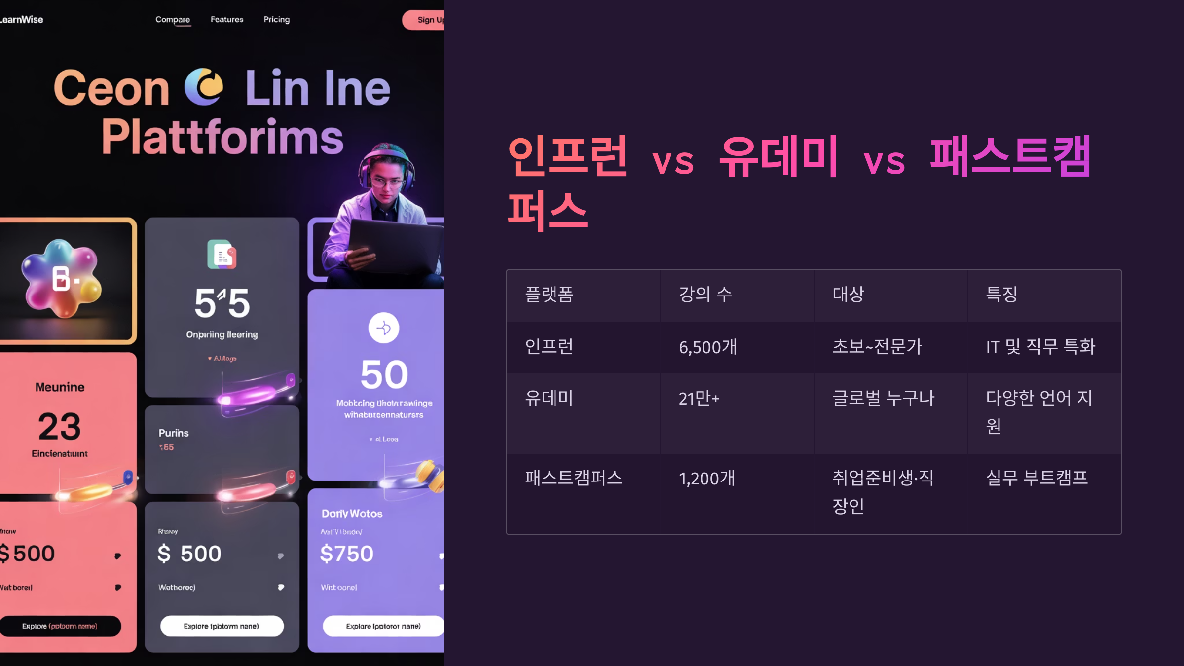 강의 품질 + 커뮤니티 + 할인 혜택이 세 가지가 다 있는 곳이에요!이번 글에서는 인프런, 유데미, 패스트캠퍼스를 중심으로 각각의 특징, 가격, 추천 대상까지 완벽하게 비교해드릴게요 👇