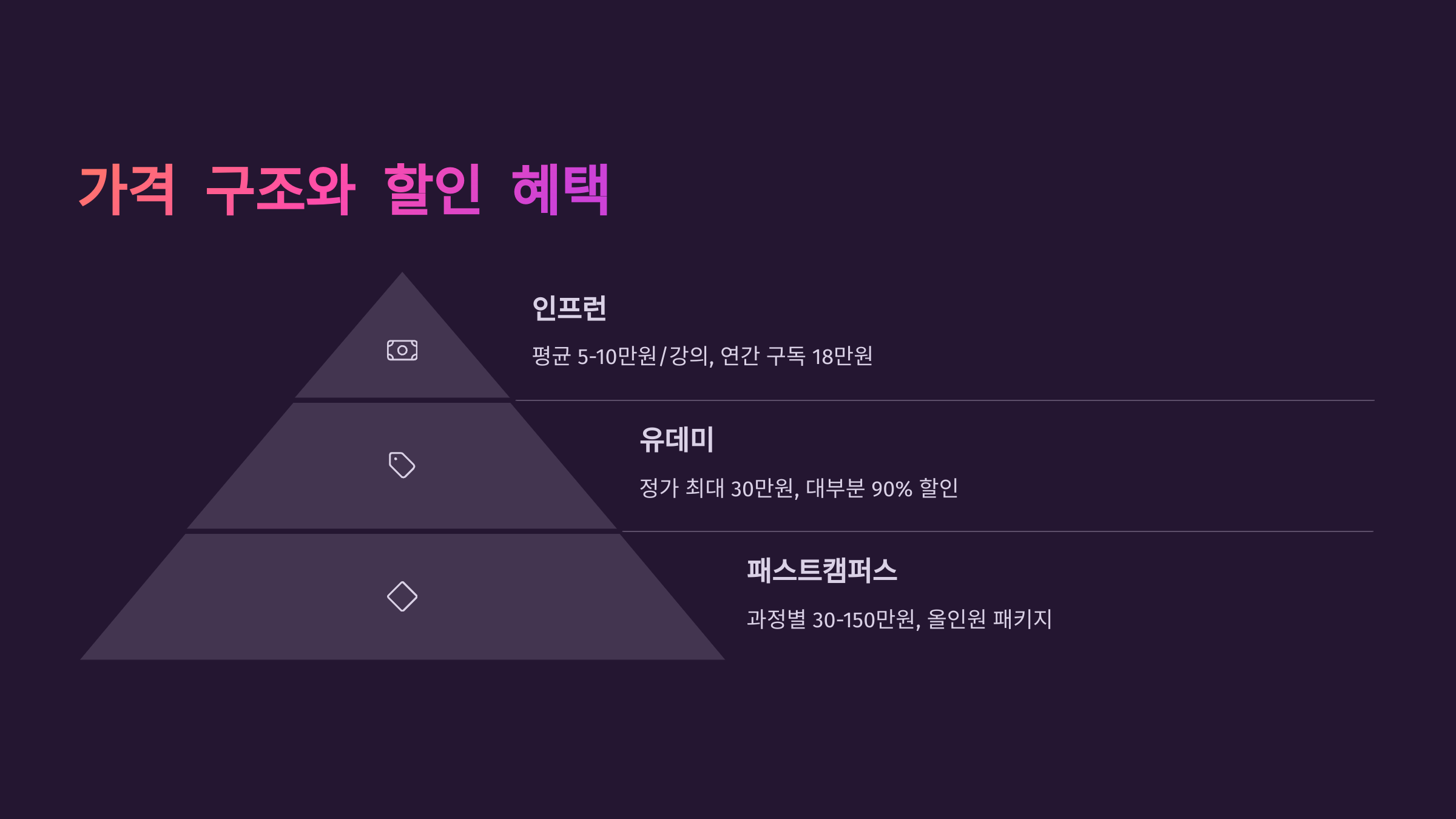 - 💡 패스트캠퍼스: 초기에 부담 있지만, 묶음 구성으로 환산 단가는 낮음