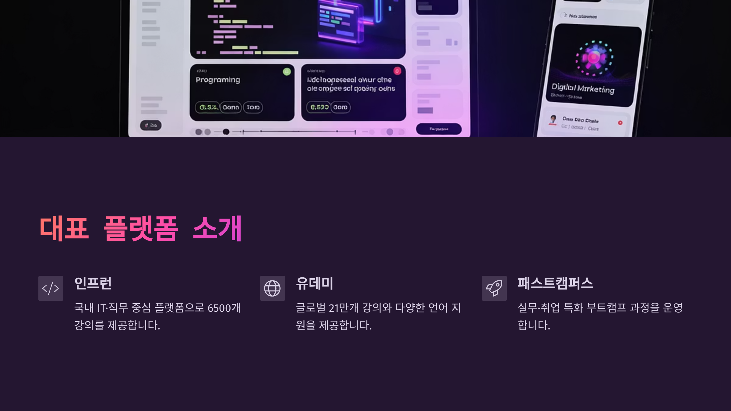 국내에서 가장 인기 있는 온라인 강의 플랫폼은 크게 세 가지로 나눌 수 있어요.