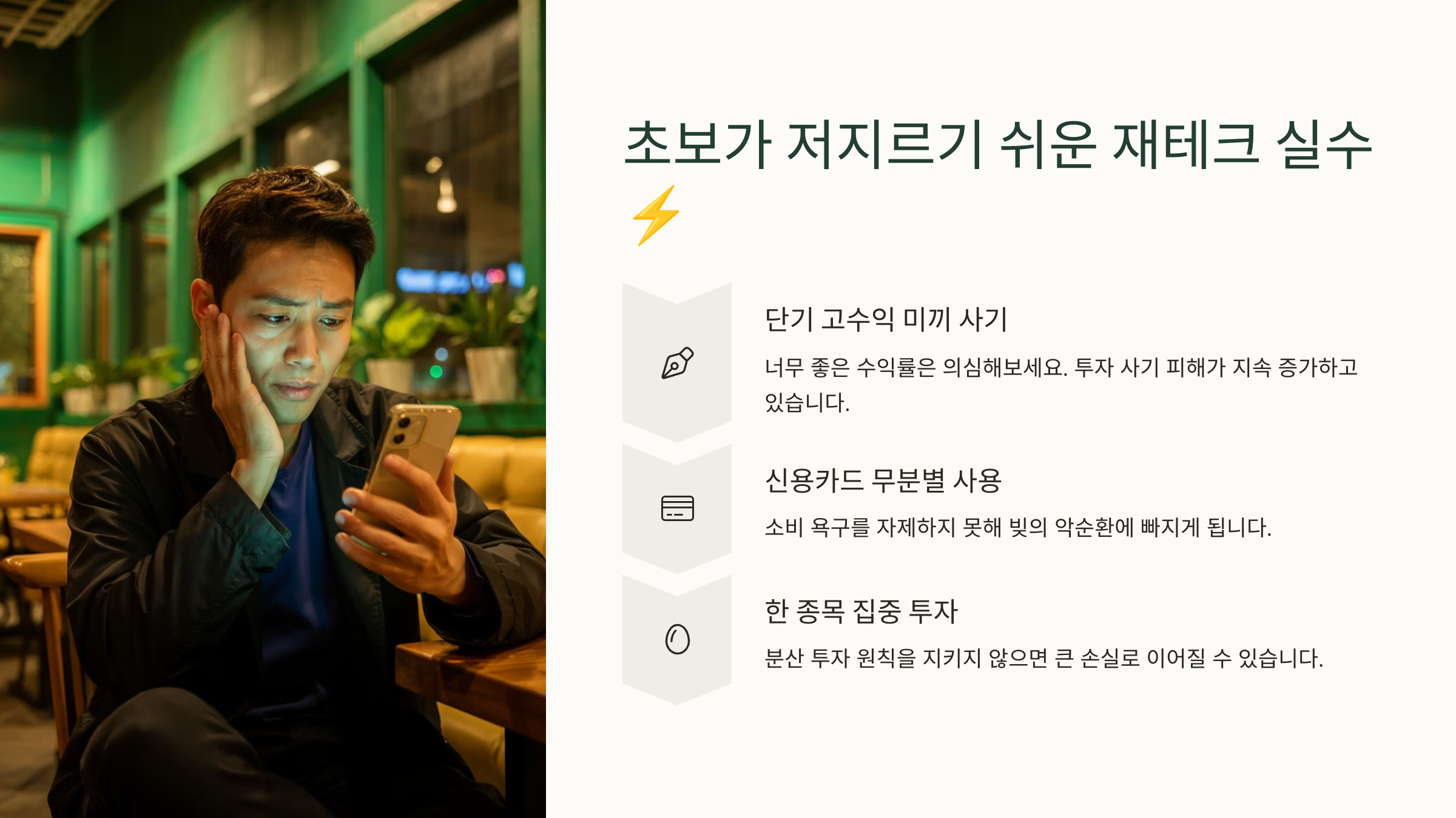 재테크 초보들이 가장 쉽게 빠지는 함정 중 하나는 '단기 수익'에 집착하는 거예요. 하루 이틀 만에 수익을 기대하다가 실망하고 포기하는 경우가 많아요. 📉